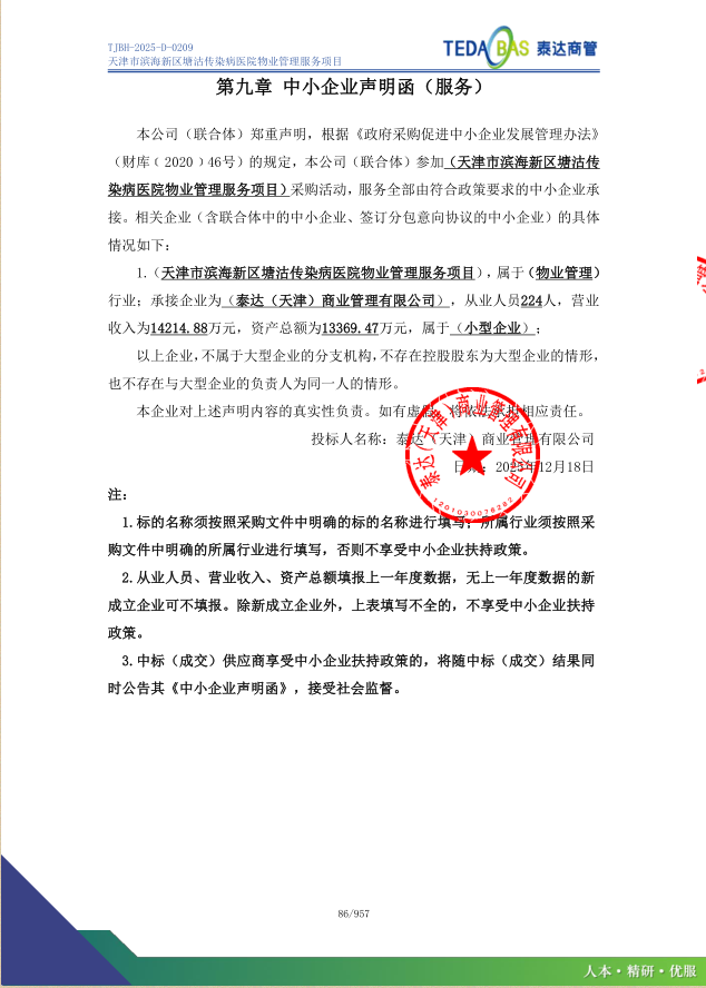 天津市滨海新区塘沽传染病医院物业管理服务项目(项目编号:TJBH-2...