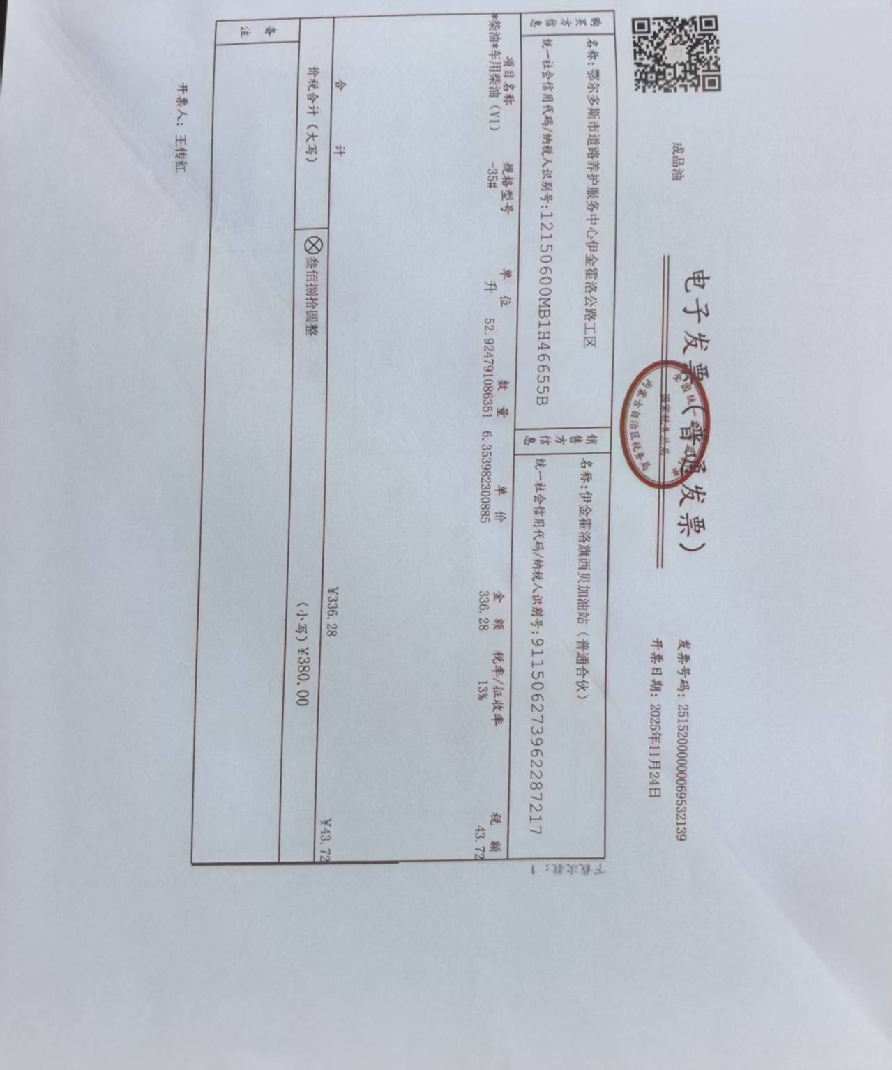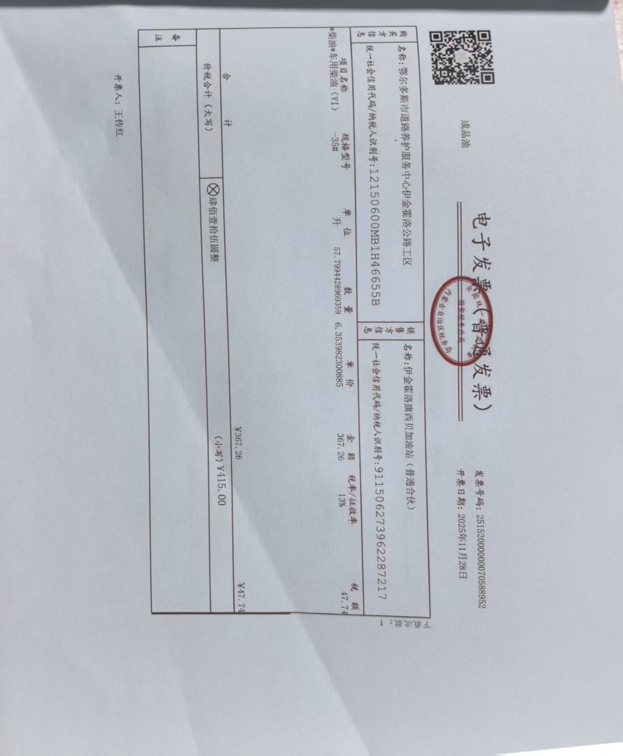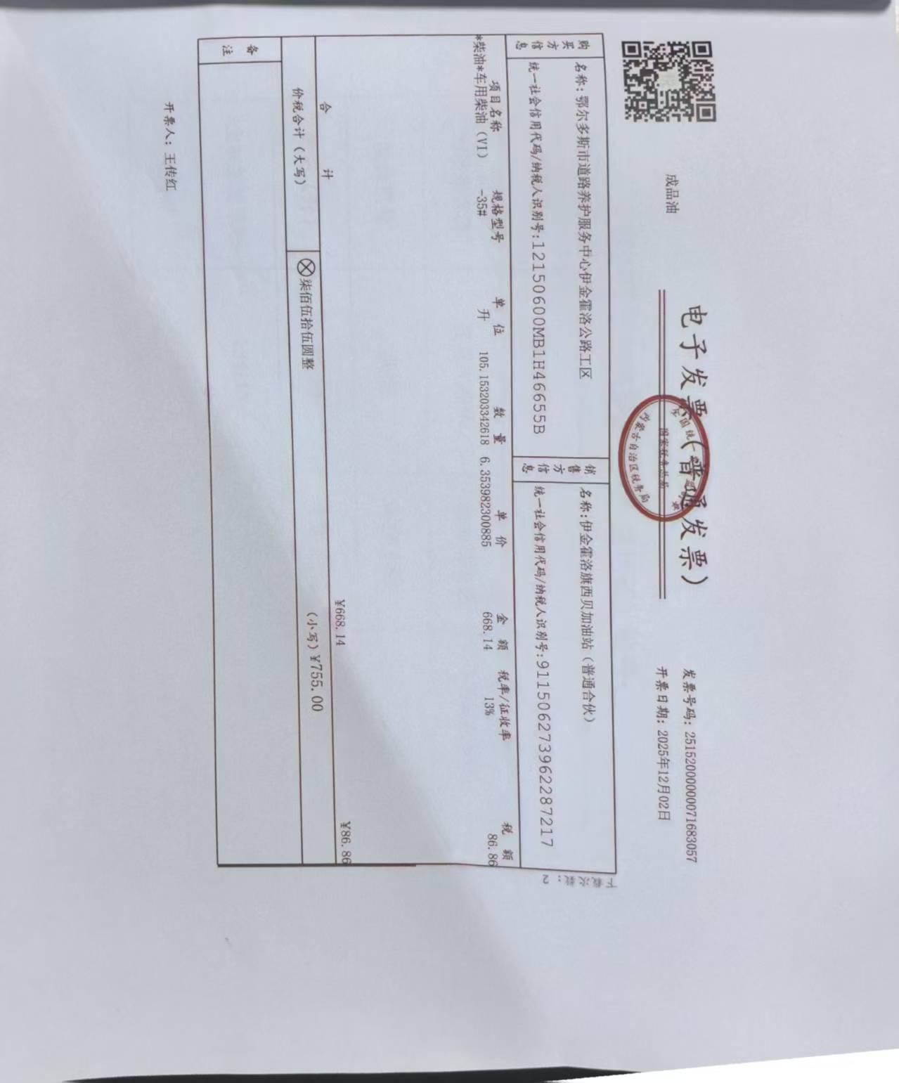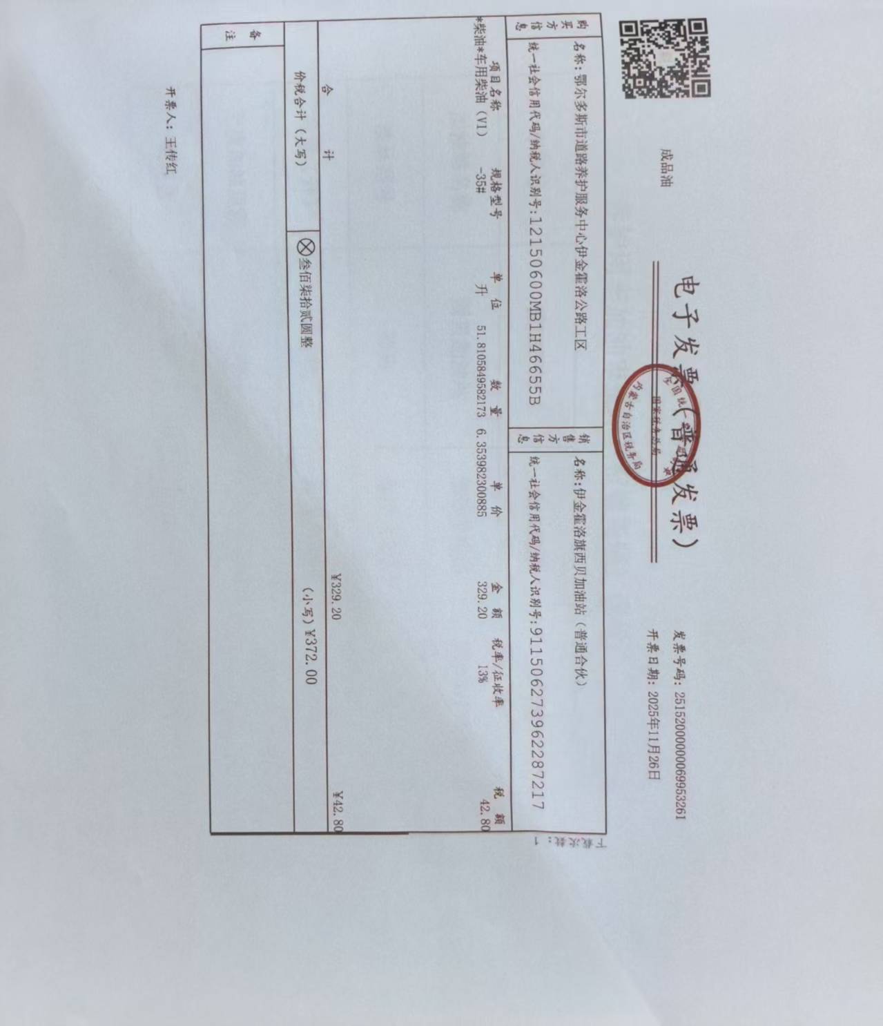 鄂尔多斯市道路养护服务中心伊金霍洛公路工区车辆加油(新街养护站巡查)政...