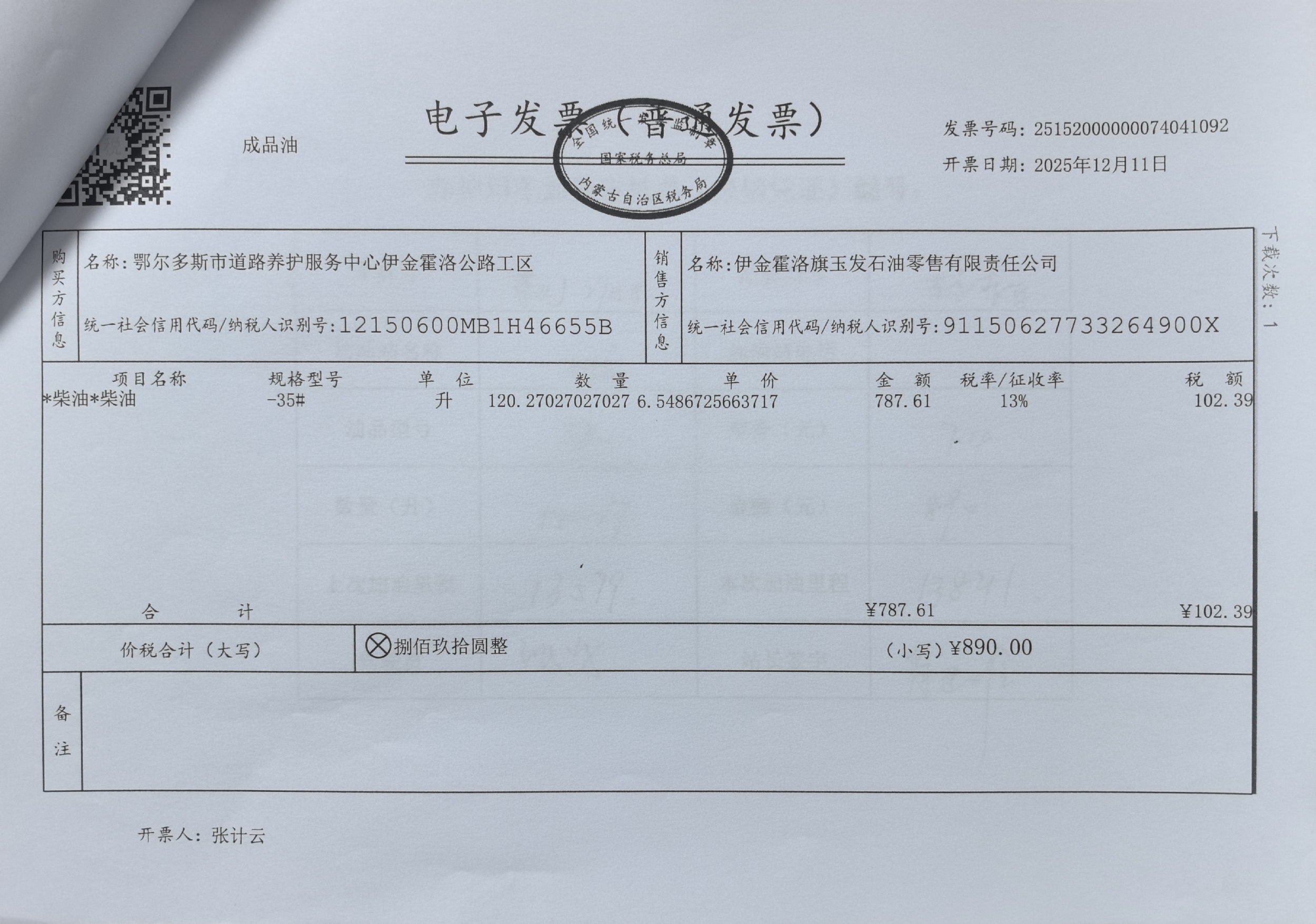 鄂尔多斯市道路养护服务中心伊金霍洛公路工区车辆加油(新街养护站)政府采购合同公告