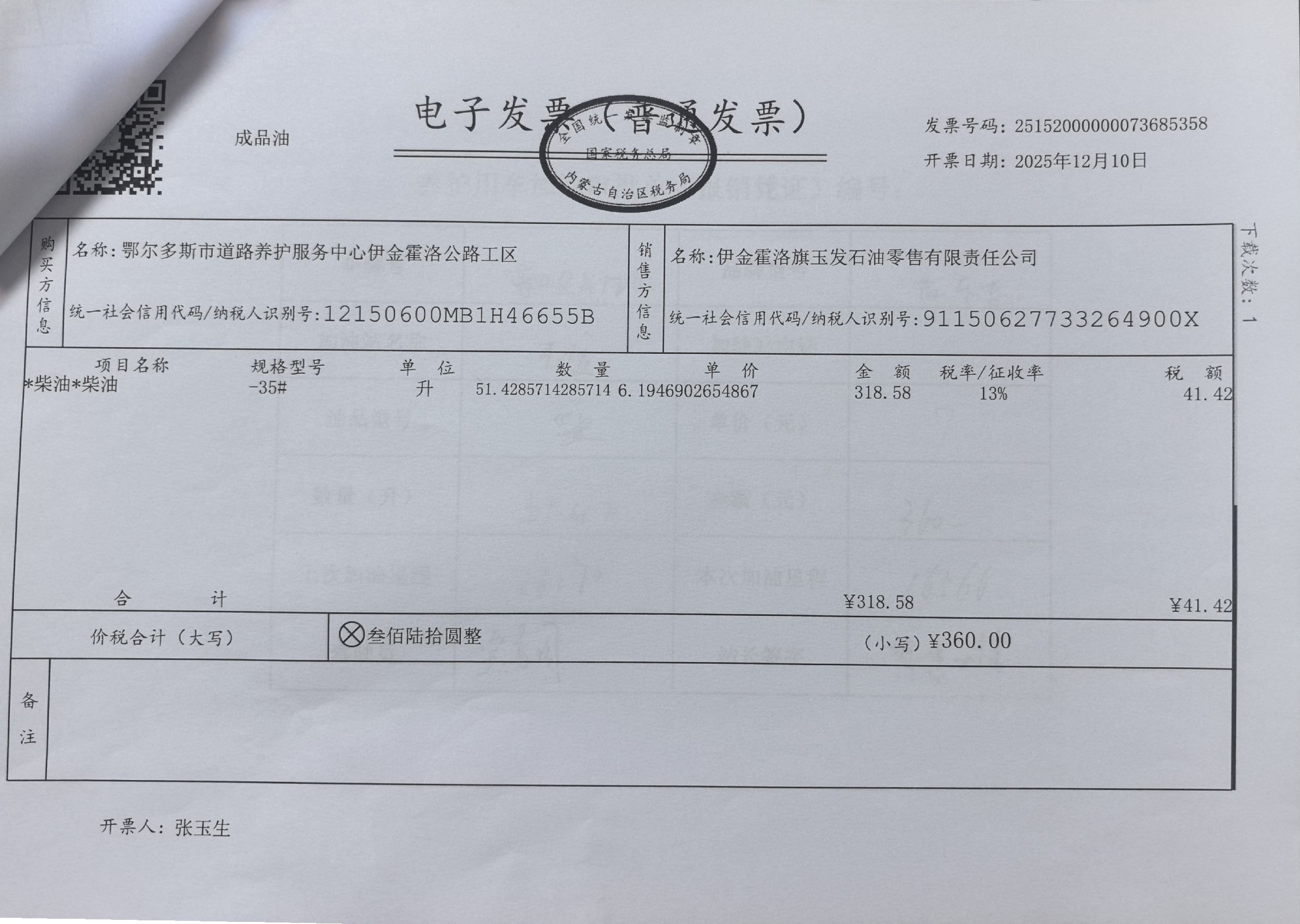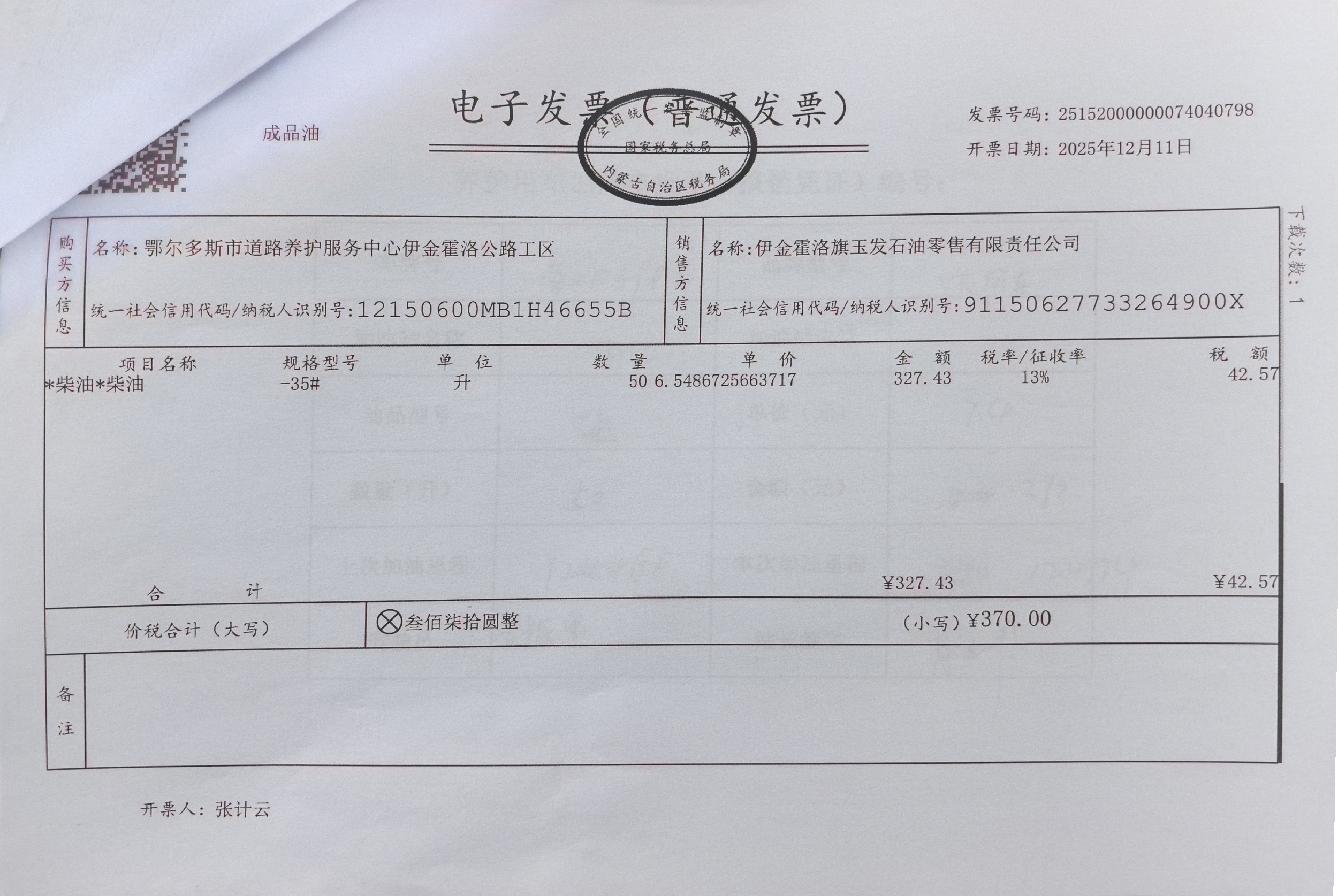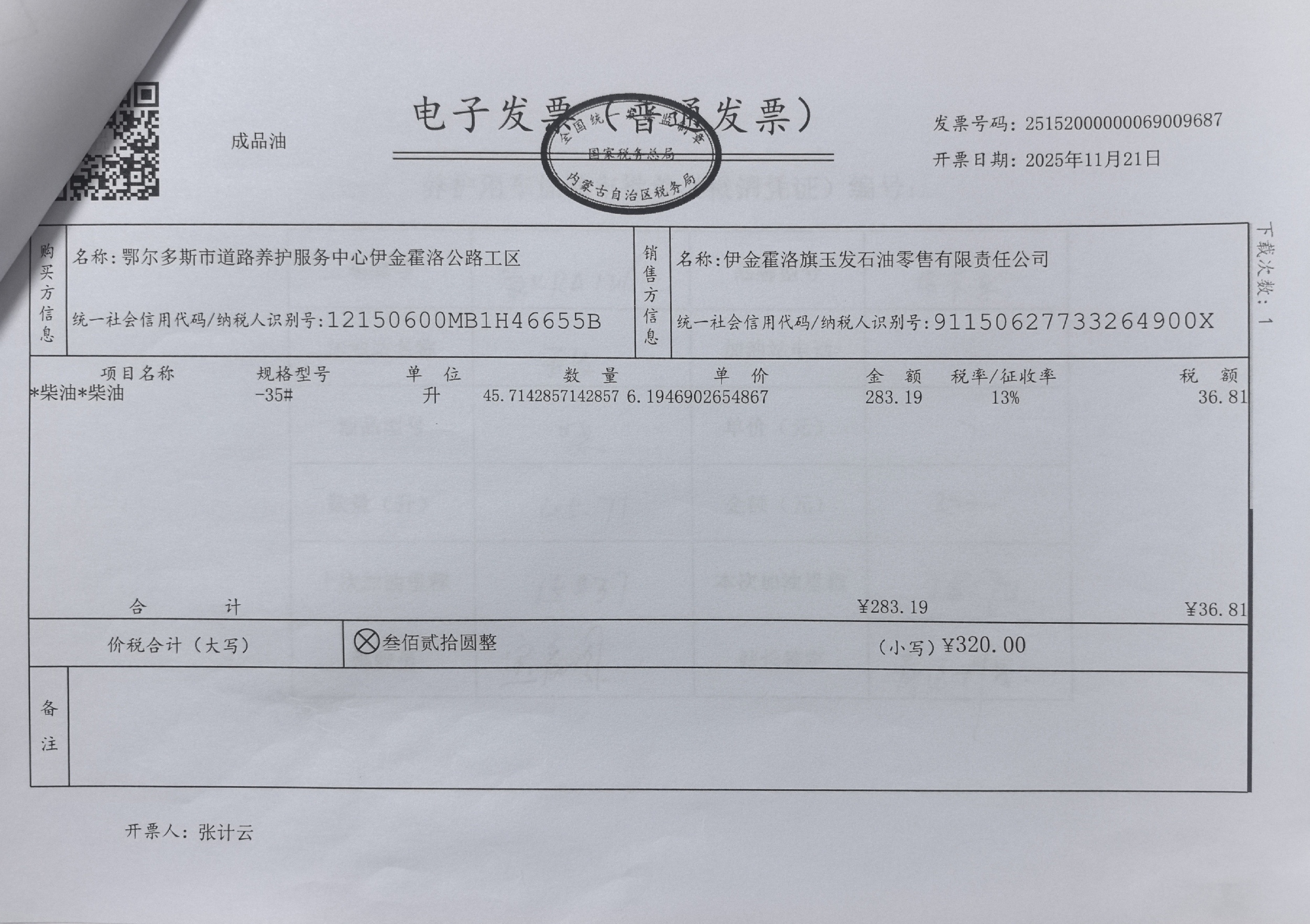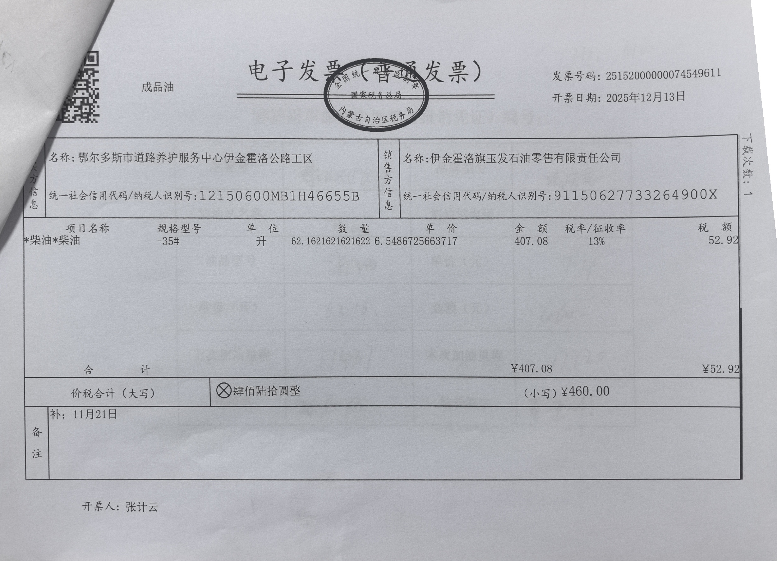 鄂尔多斯市道路养护服务中心伊金霍洛公路工区车辆加油(新街养护站)政府采购合同公告