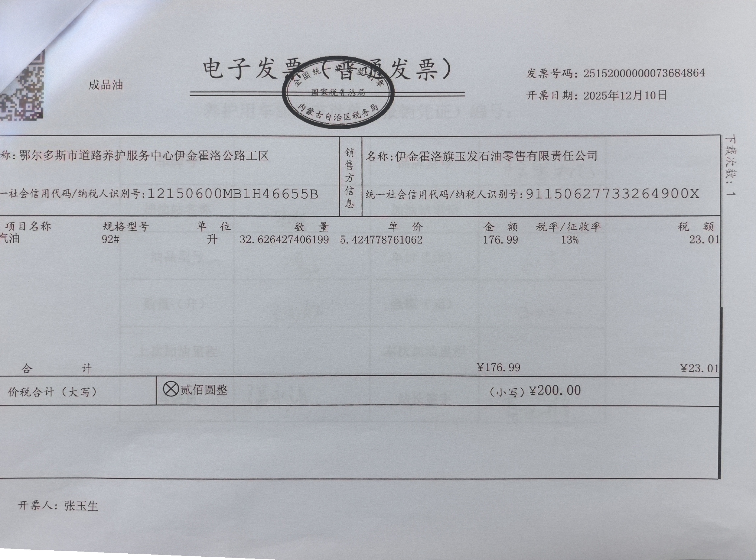 鄂尔多斯市道路养护服务中心伊金霍洛公路工区车辆加油(新街养护站)政府采...