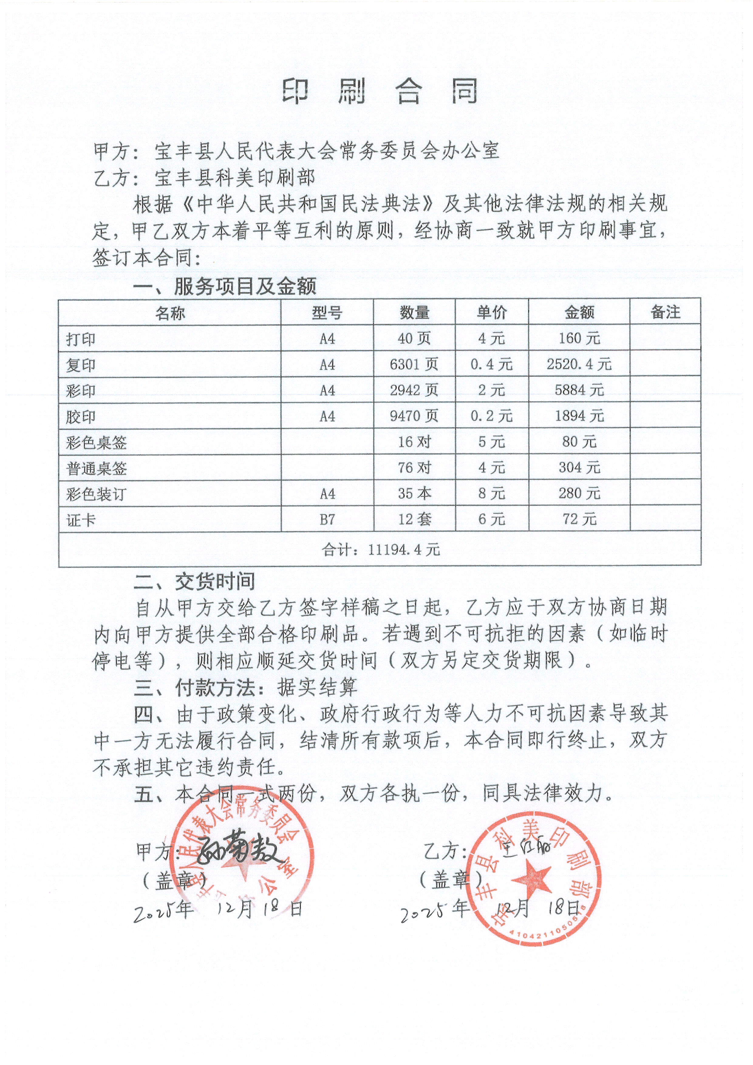 | *.供应商(乙方):宝丰县科美印刷部 | ||||||||||||