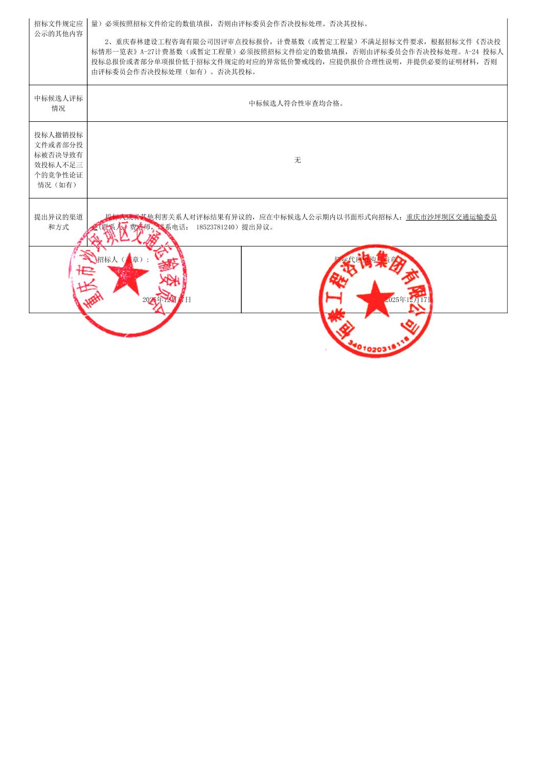 | 名称: | 沙坪坝区城中村片区改造一期(科学城站片区)配套基础设施项目监理中标候选人公示 | ||||