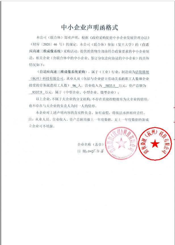 复旦大学自适应高速三维成像系统采购单一来源成交公告