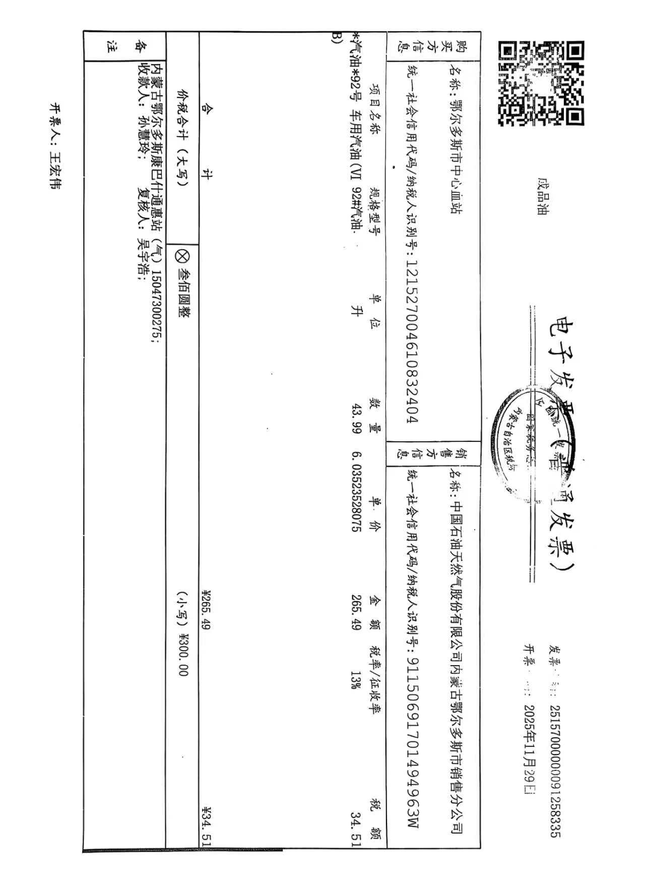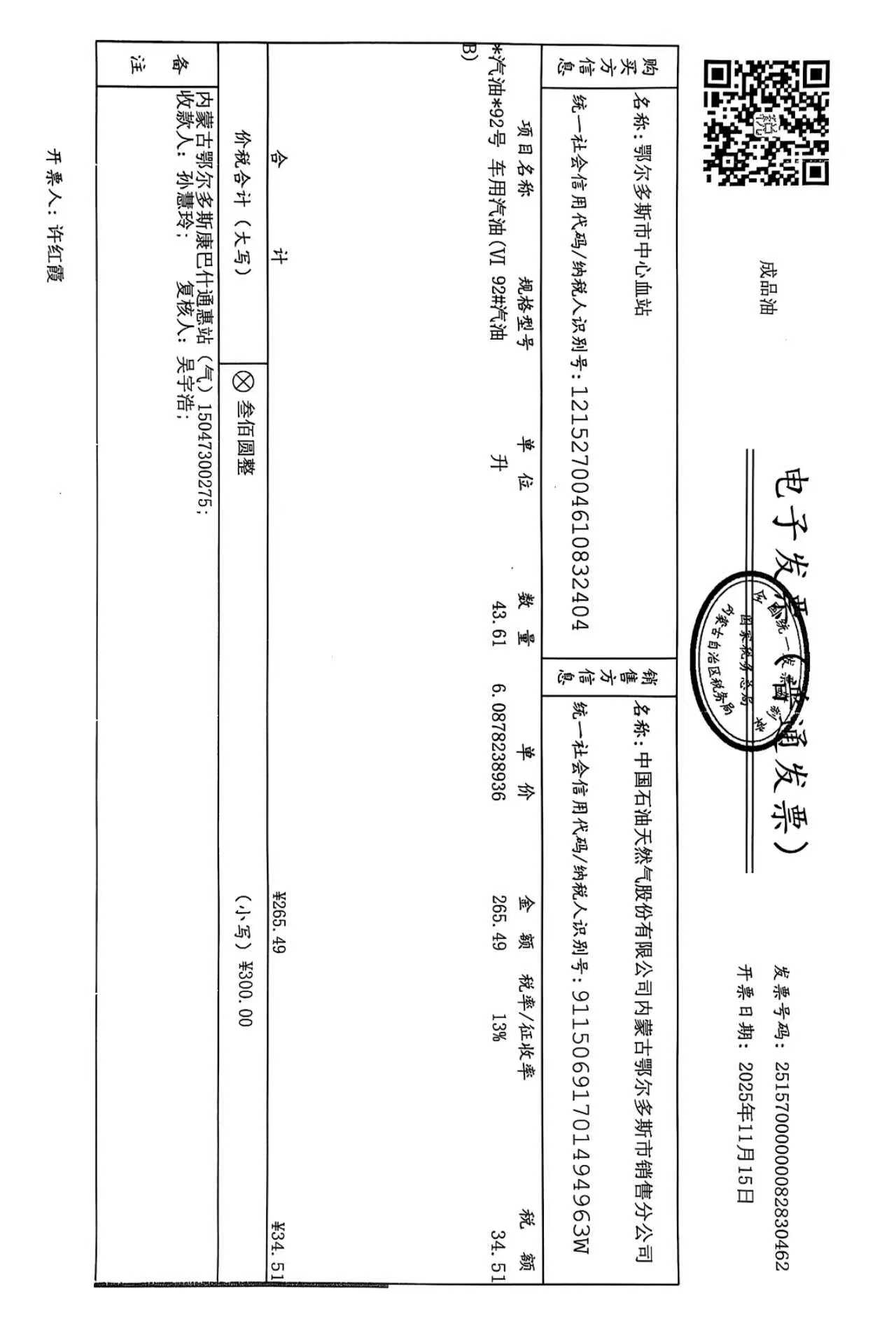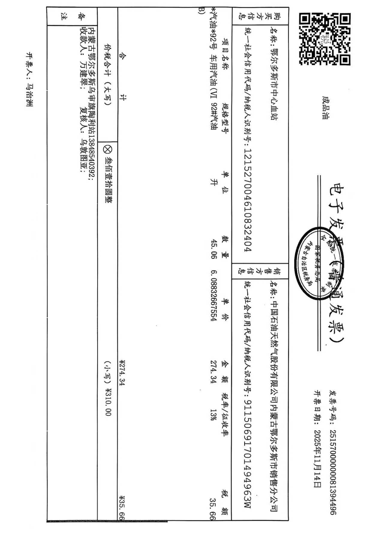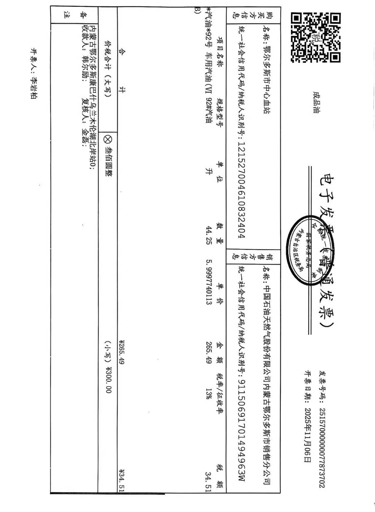 鄂尔多斯市中心血站蒙K93X59车辆11月用油政府采购合同公告