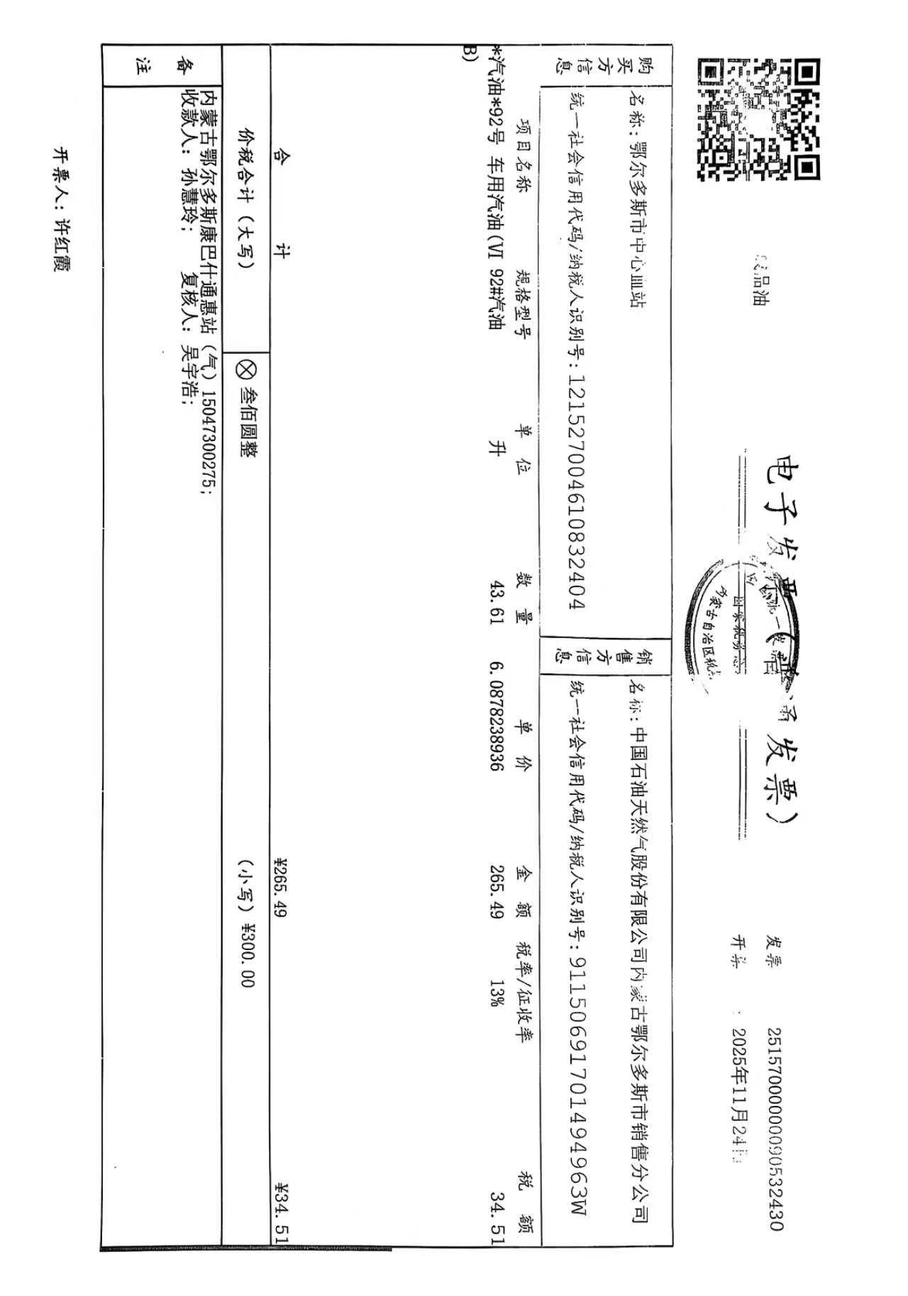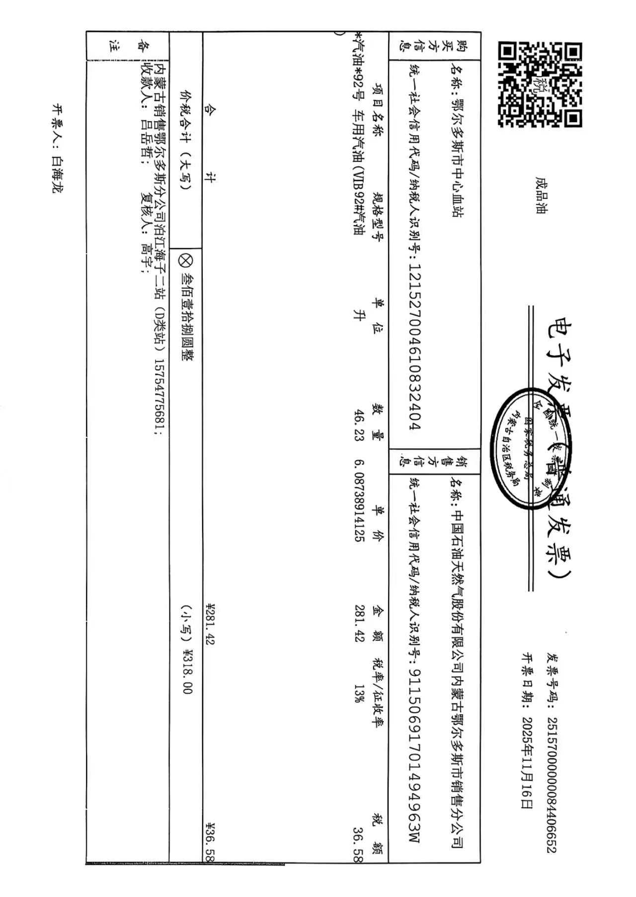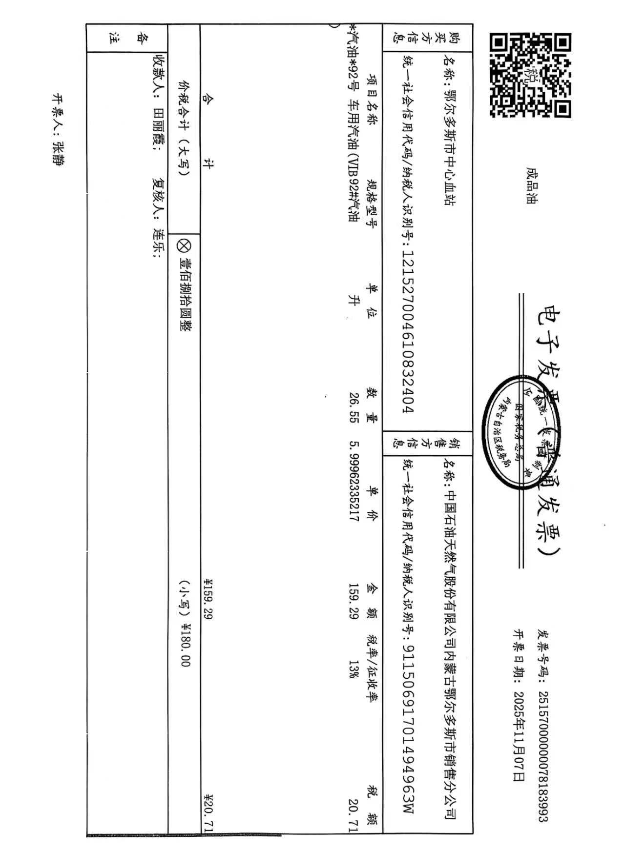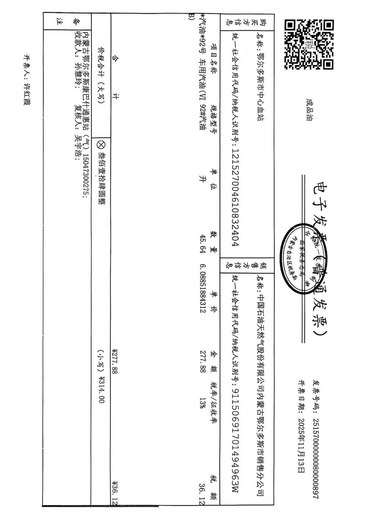 鄂尔多斯市中心血站蒙K93X59车辆11月用油政府采购合同公告