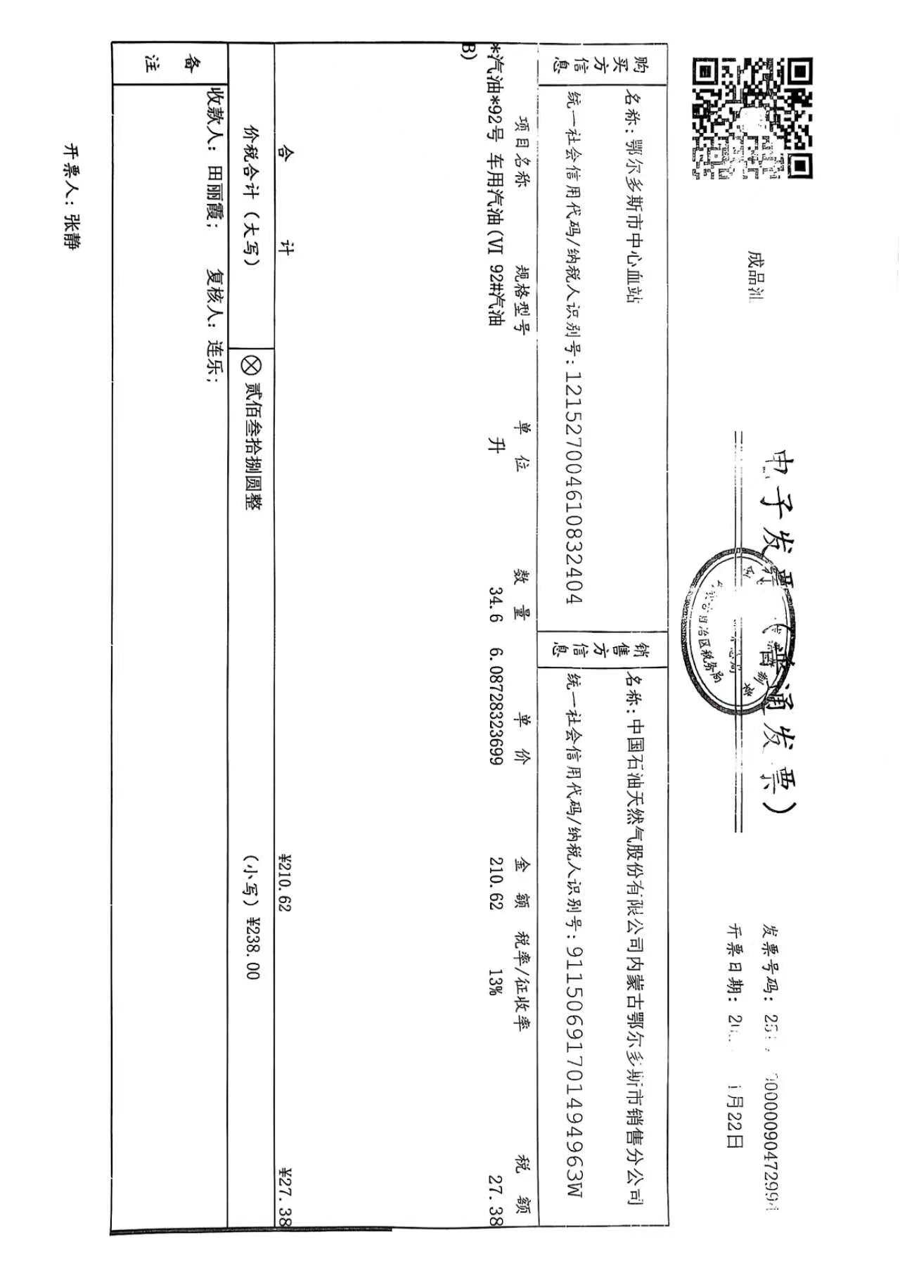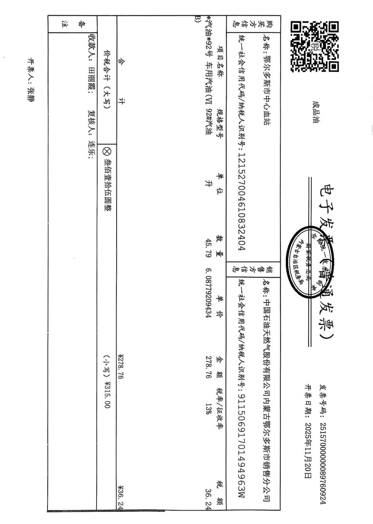 鄂尔多斯市中心血站蒙******车辆**月用油政府采购合同公告