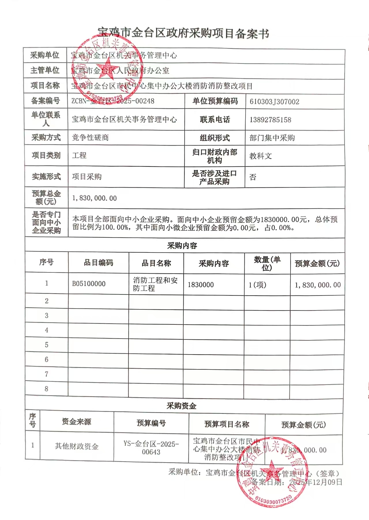宝鸡市金台区市民中心集中办公大楼消防消防整改项目竞争性磋商公告