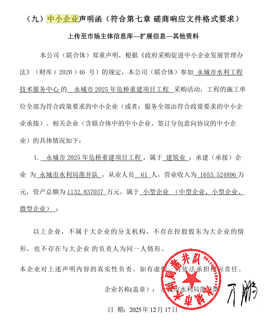 永城市水利工程技术服务中心永城市2025年危桥重建项目工程项目-成交公告