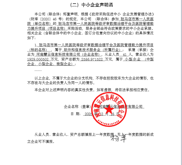 驻马店市第一人民医院等级评审数据治理平台及医院管理能力提升项目*中标公告