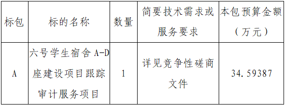 项目名称:六号学生宿舍***座建设项目跟踪审计服务项目