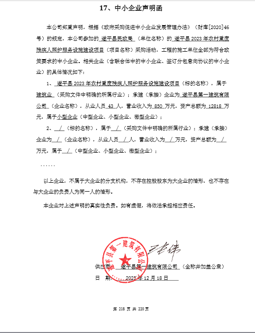 | *、采购项目名称:遂平县****年农村重度残疾人照护服务设施建设项目 | |||||||||||||||||||||||||||||||