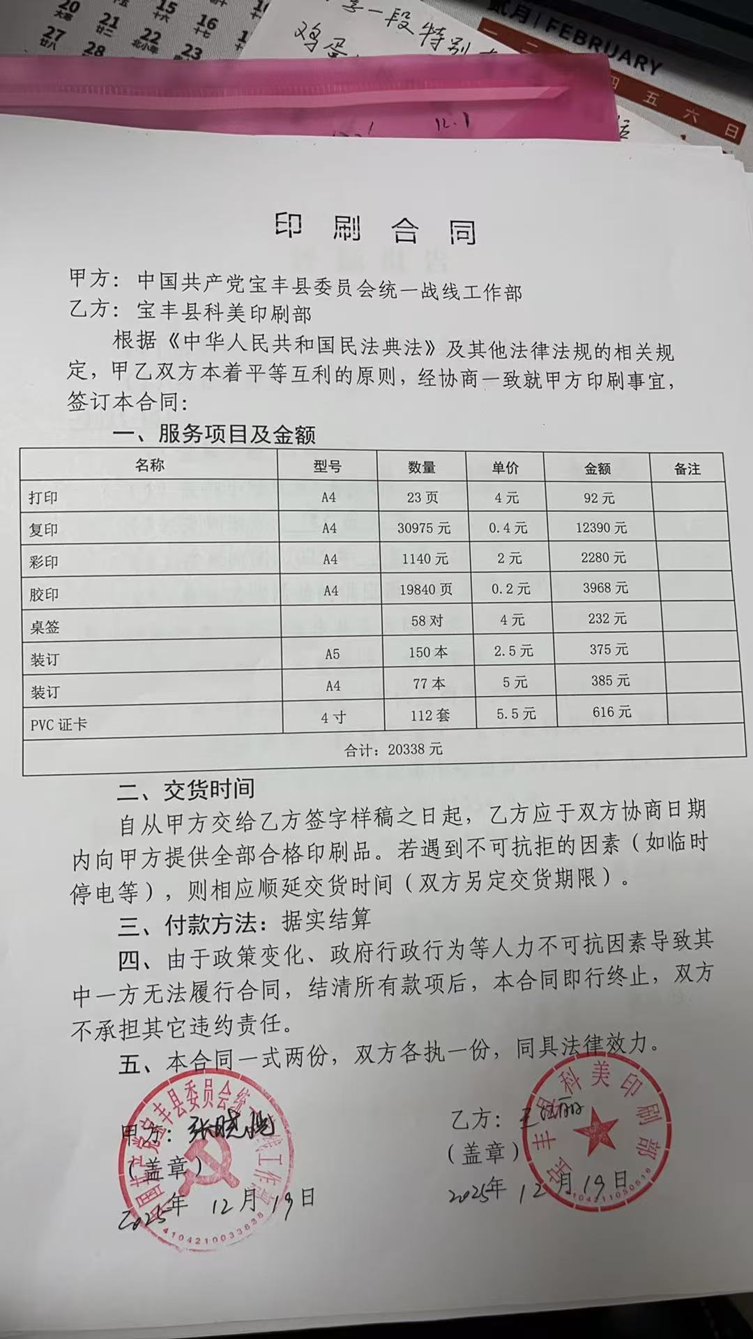| 二、合同名称:中国共产党宝丰县委员会统一战线工作部中共宝丰县委统战部文印费项目 | ||||||||||||