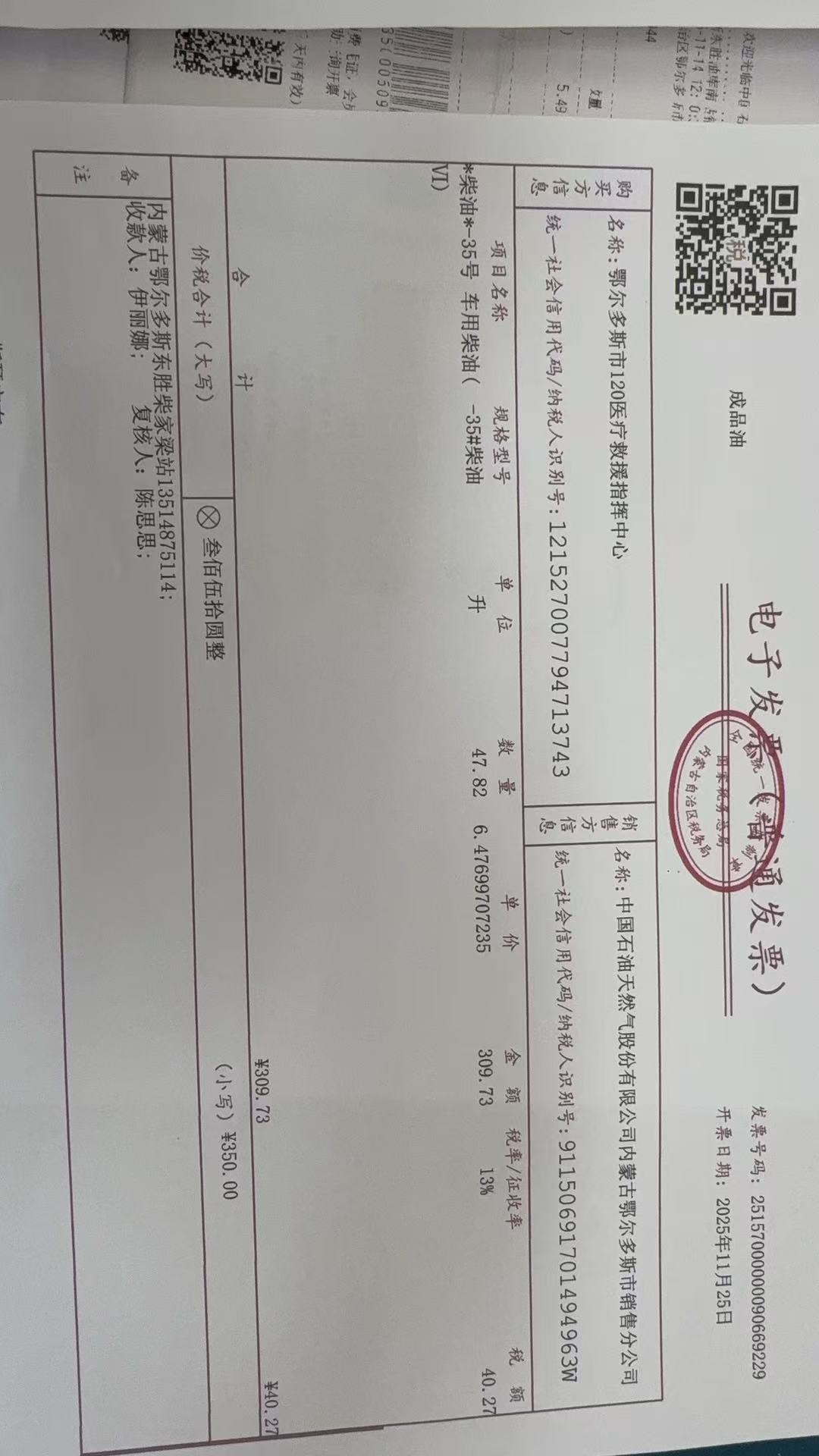 鄂尔多斯市120医疗救援指挥中心2025燃油费14政府采购合同公告
