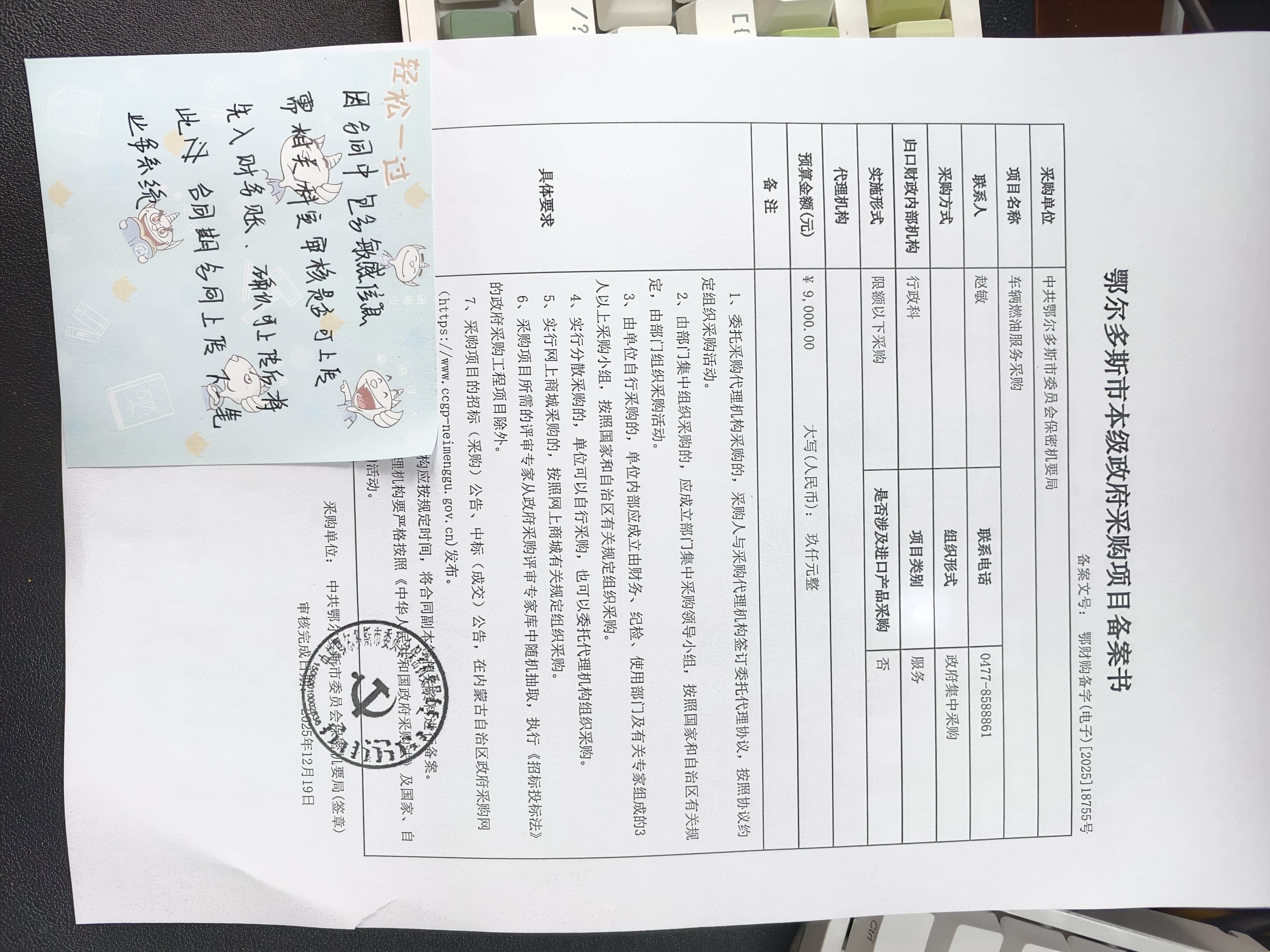 中共鄂尔多斯市委员会保密机要局零售供油合同政府采购合同公告