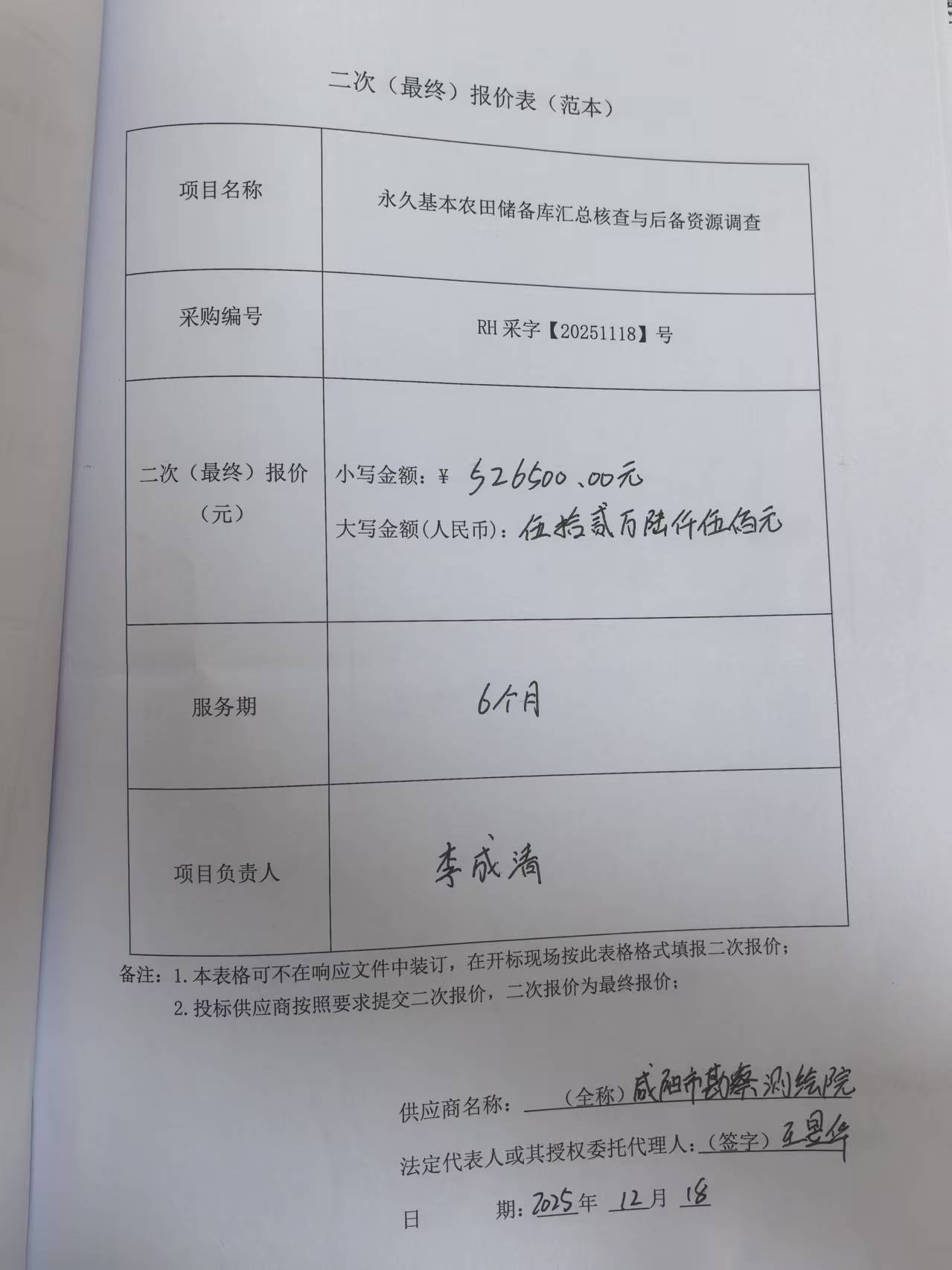 永久基本农田储备库汇总核查与后备资源调查中标(成交)结果公告