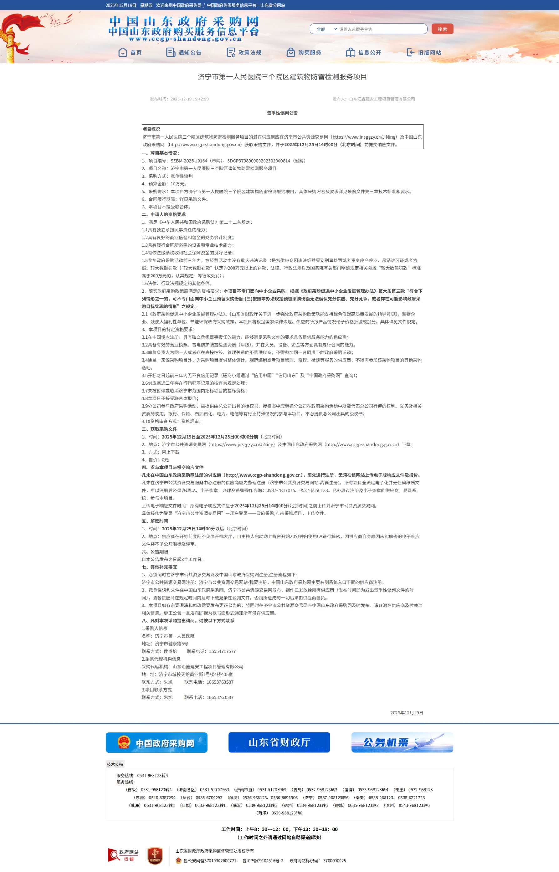 济宁市第一人民医院三个院区建筑物防雷检测服务项目竞争性谈判公告