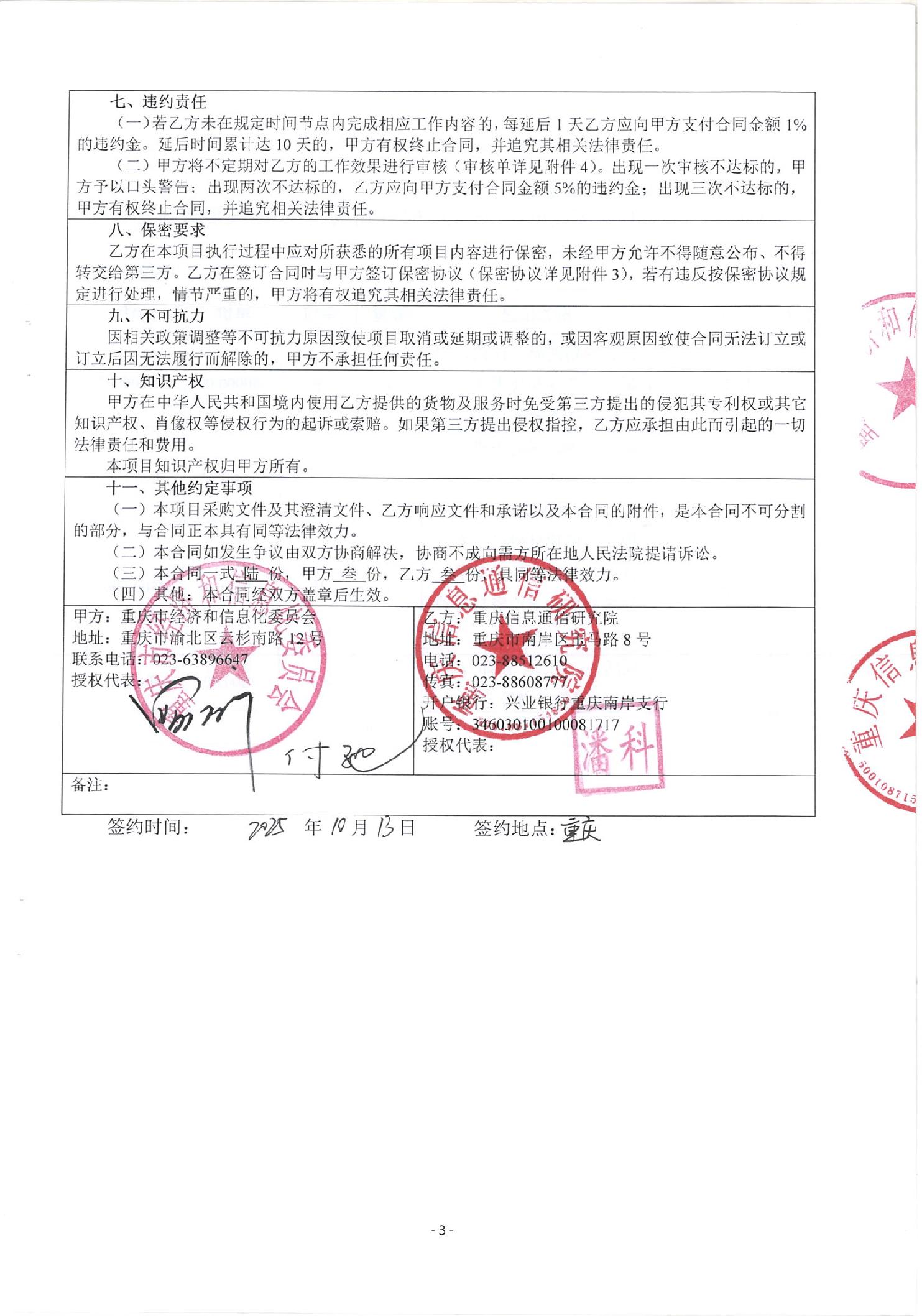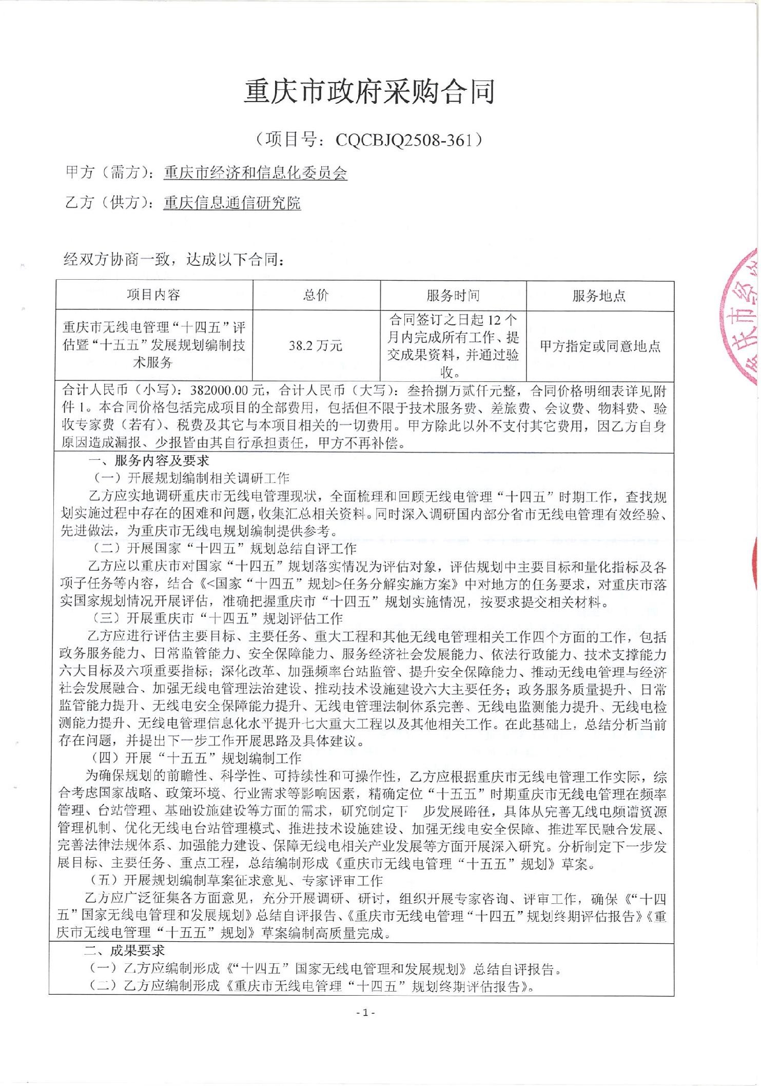 重庆市无线电管理“十四五”评估暨“十五五”发展规划编制技术服务项目合同公示
