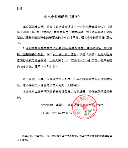 泌阳县农业农村局泌阳县2025年高标准农田建设项目第一批(深耕、监理服务)项目-中标公告