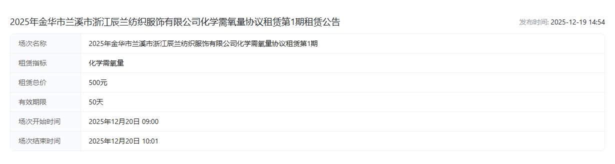 服饰有限公司化学需氧量协议租赁第*期租赁公告