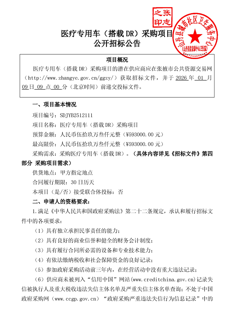 医疗专用车(搭载DR)采购项目招标公告{type}