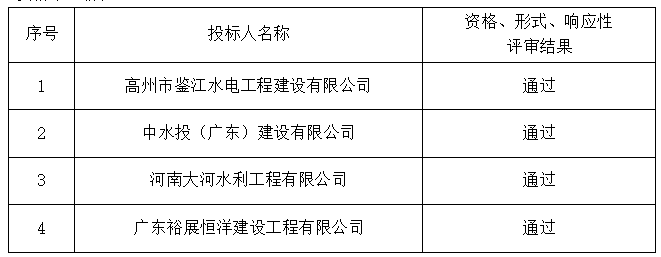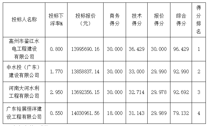 第一中标 候选人 | 高州市鉴江水电工程建设有限公司 | ||