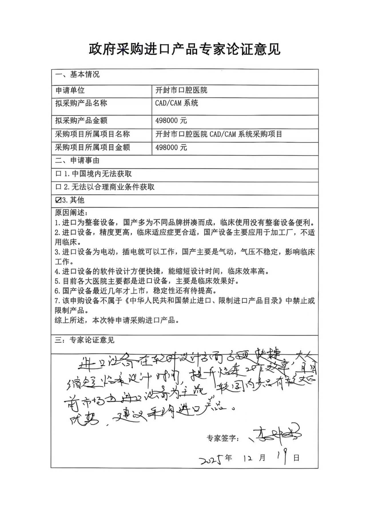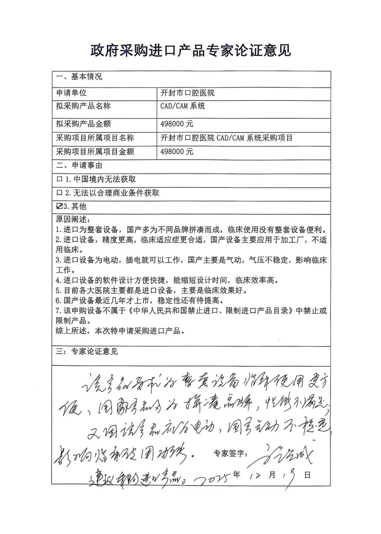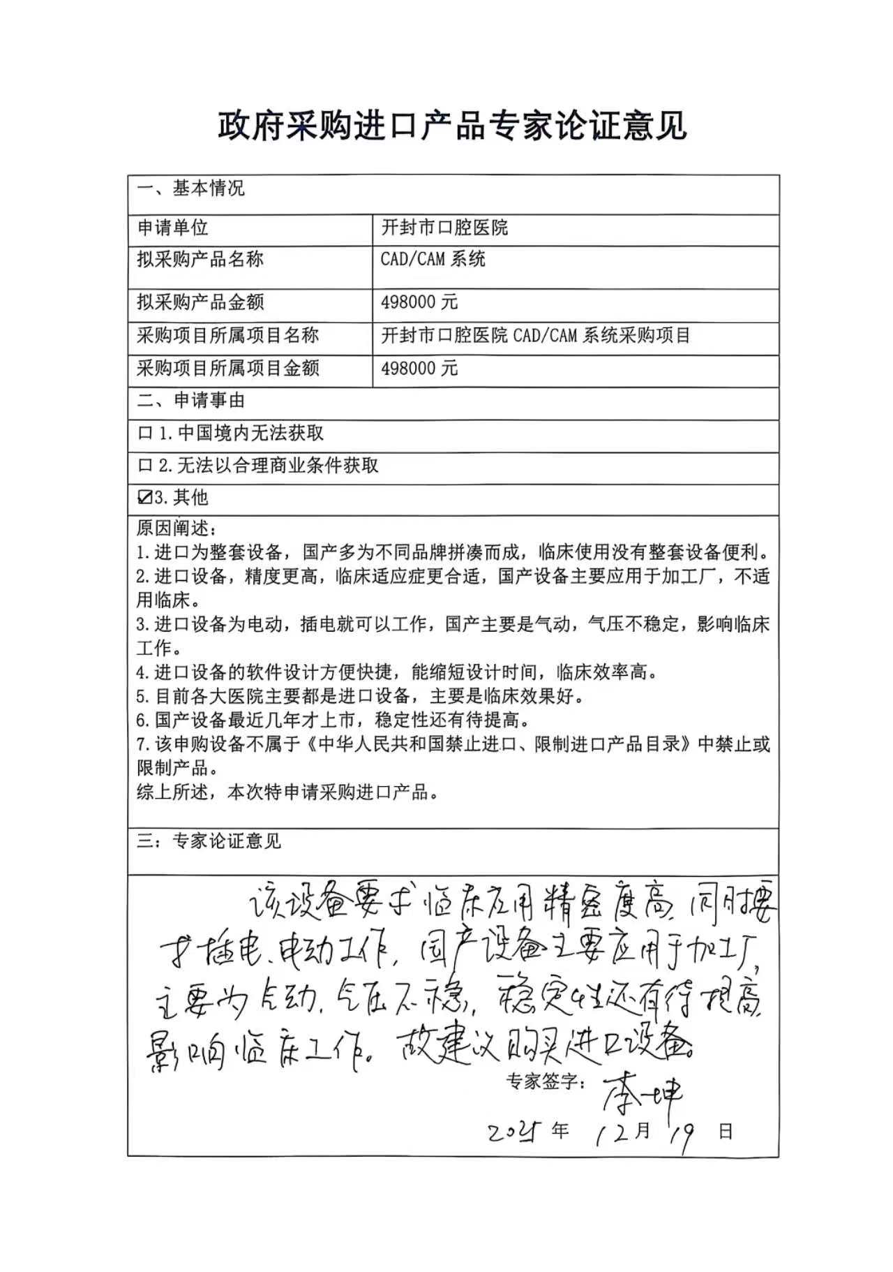 开封市口腔医院CAD/CAM系统采购项目进口产品论证意见及技术参数公示