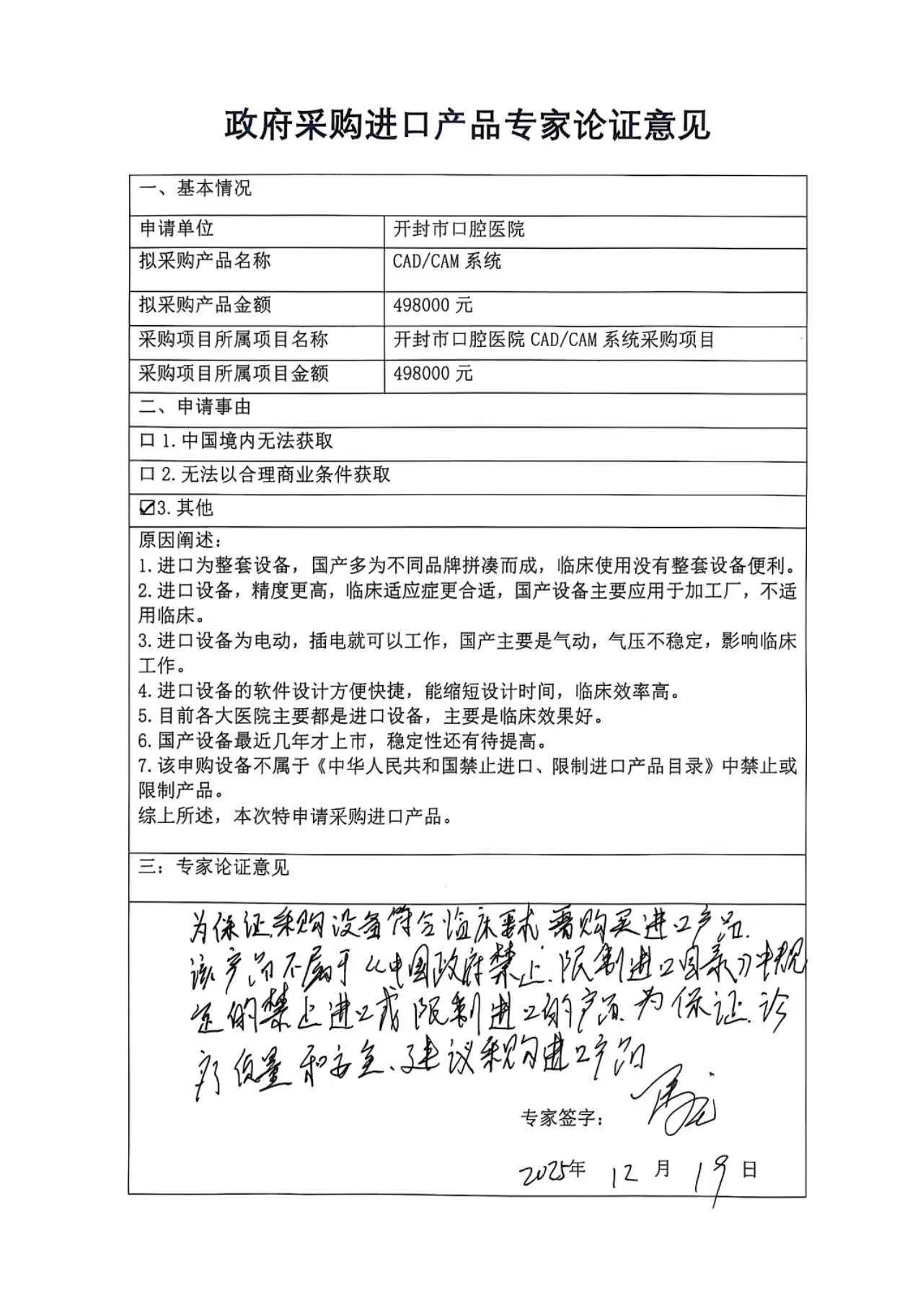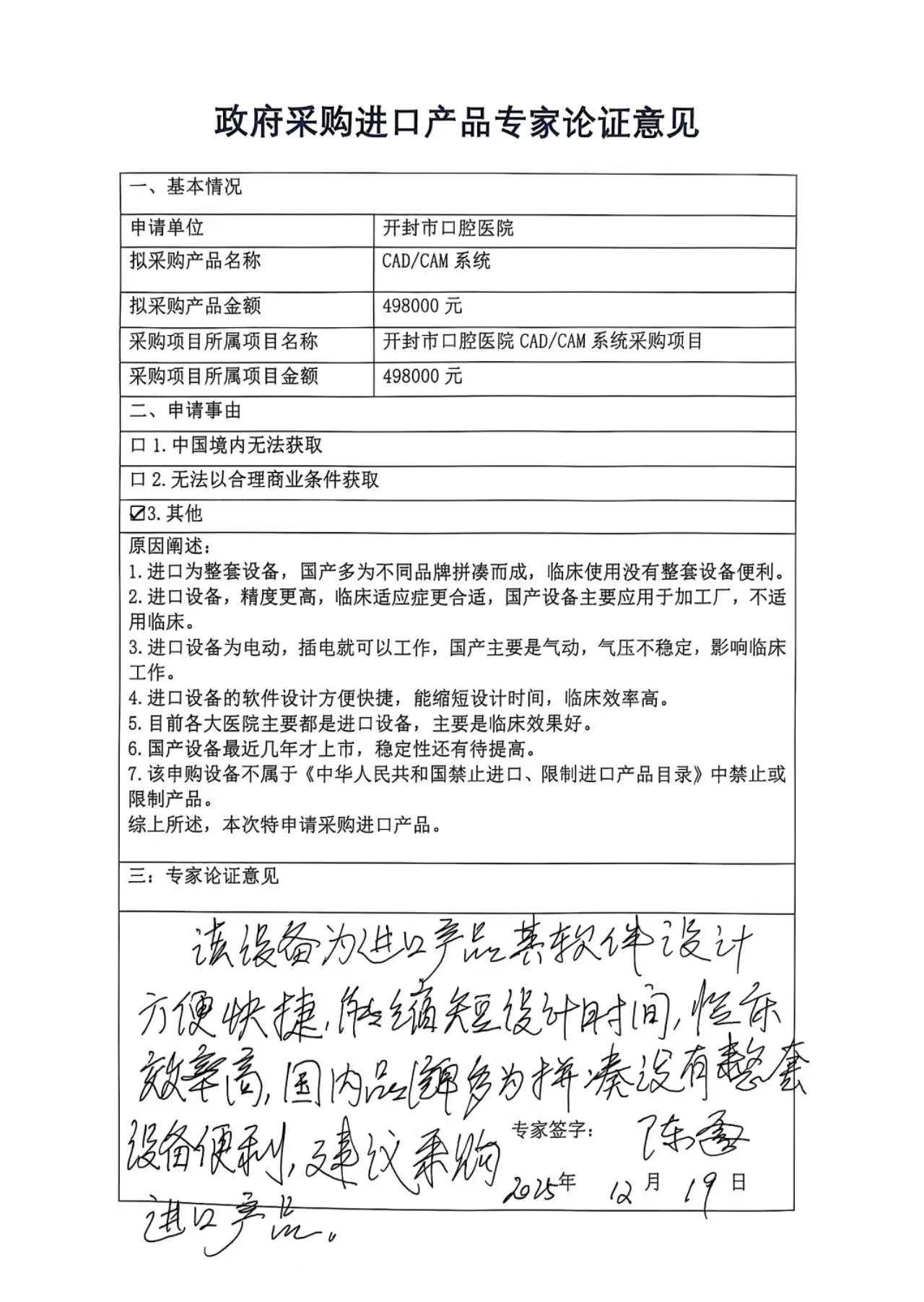开封市口腔医院***/***系统采购项目进口产品论证意见及技术参数公示