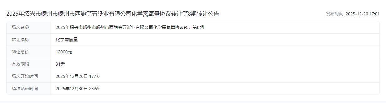 有限公司化学需氧量协议转让第8期转让公告