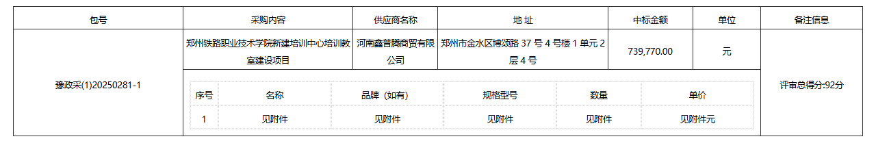 *、采购项目名称:郑州铁路职业技术学院新建培训中心培训教室建设项目