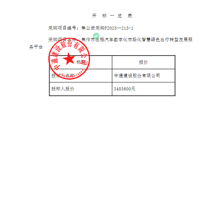 焦作市出租汽车数字化市场化智慧绿色出行转型发展服务平台*中标公告