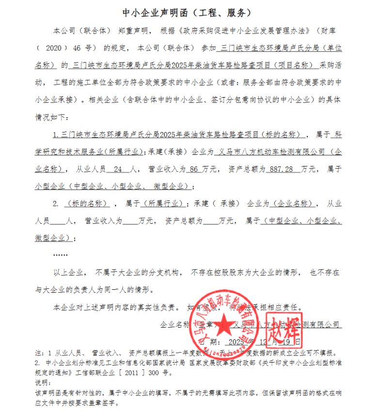 三门峡市生态环境局卢氏分局2025年柴油货车路检路查项目(二次)-成交公告