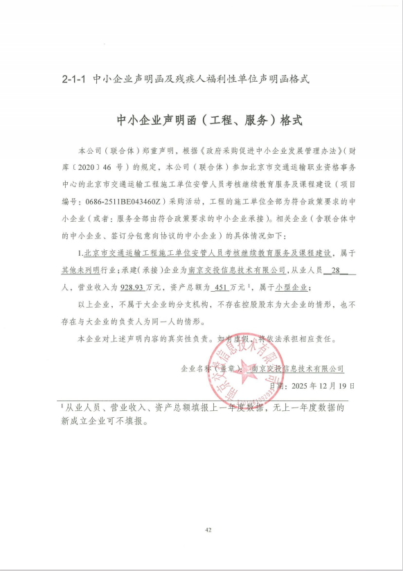 [公开]北京市交通运输工程施工单位安管人员考核继续教育服务及课程建设项目中标结果公告