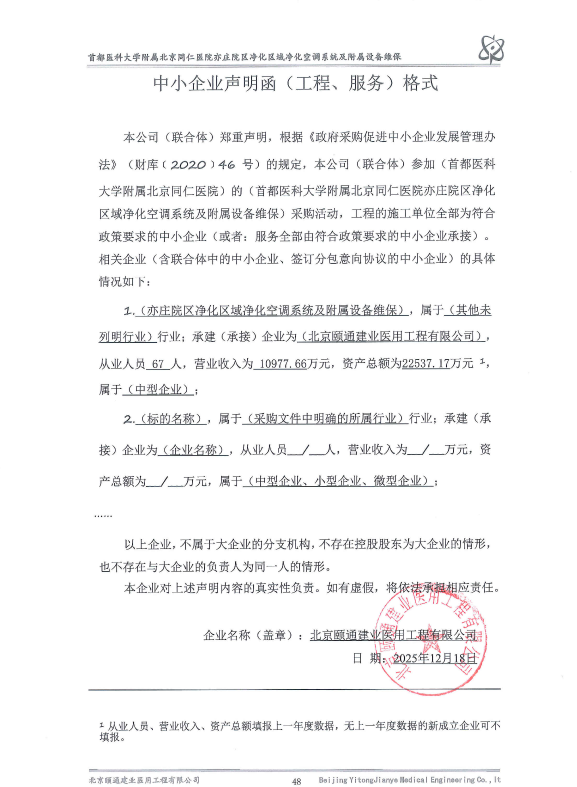 [公开]首都医科大学附属北京同仁医院亦庄院区净化区域净化空调系统及附属设备维保中标公...