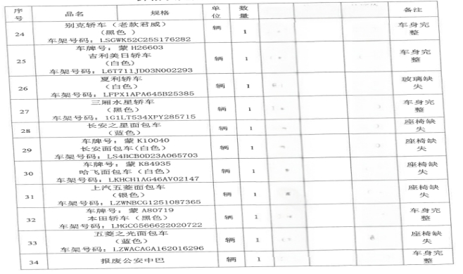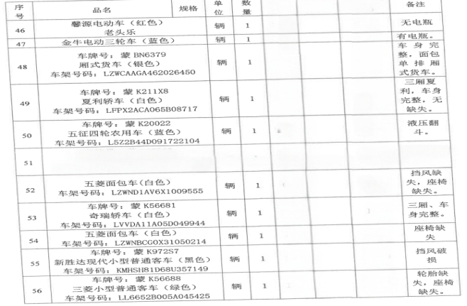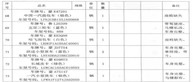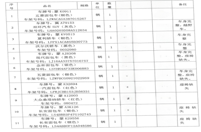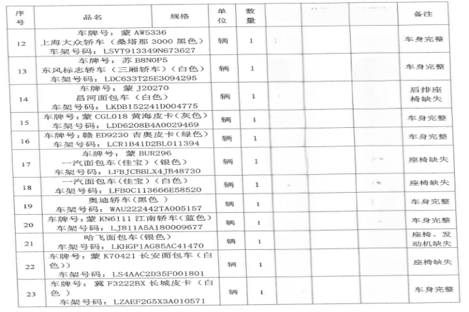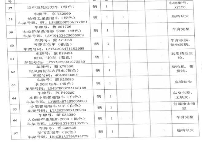 **台无人认领机动车报废残值整体打包拍卖(后附明细表)