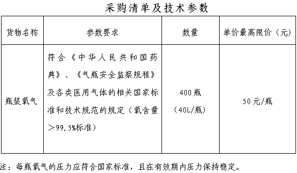 项目名称:甘肃医学院附属医院(平凉市人民医院)瓶装氧气采购项目