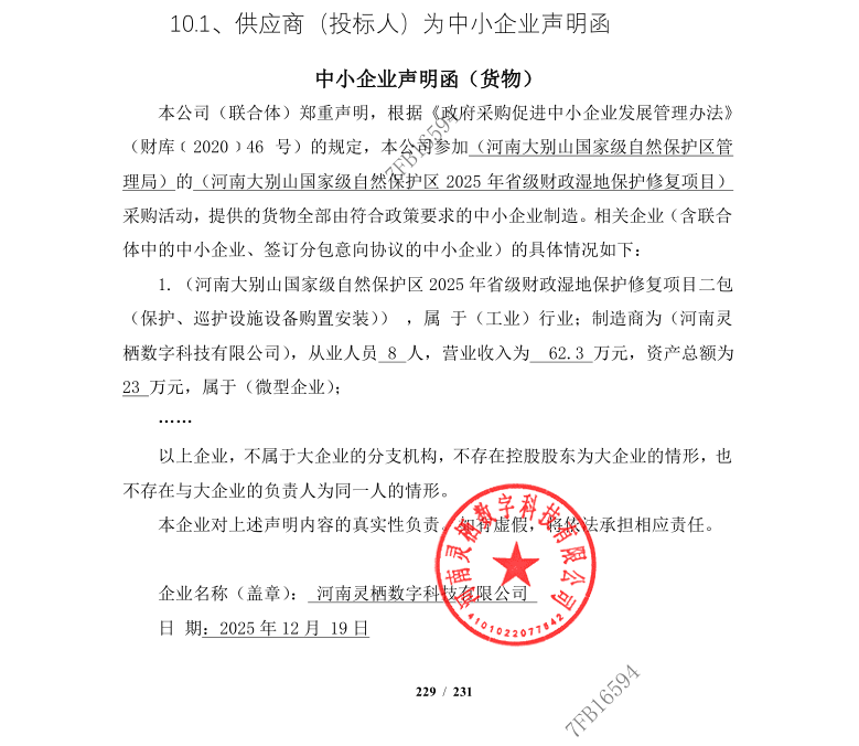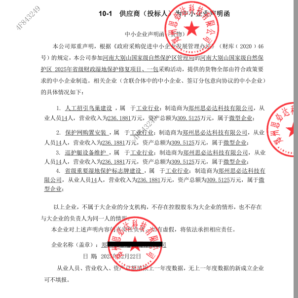 | (*)采购内容:河南大别山国家级自然保护区****年省级财政湿地保护修复项目, 具体要求详见招标文件; (*)资金来源:财政资金,已落实; (*)质量要求:达到国家相关规范和要求; (*)供货、服务期: *、*包供货期:合同签订后**日历天内完成供货并安装完毕; *包服务期:合同签订后*年; (*)质保期:*包* 年、*包*年; (*)建设、交货地点:采购人指定地点。 | |||||||||||||||||||||||||||||||||||||||||||||||||||||||||||||||||||||||||||||||