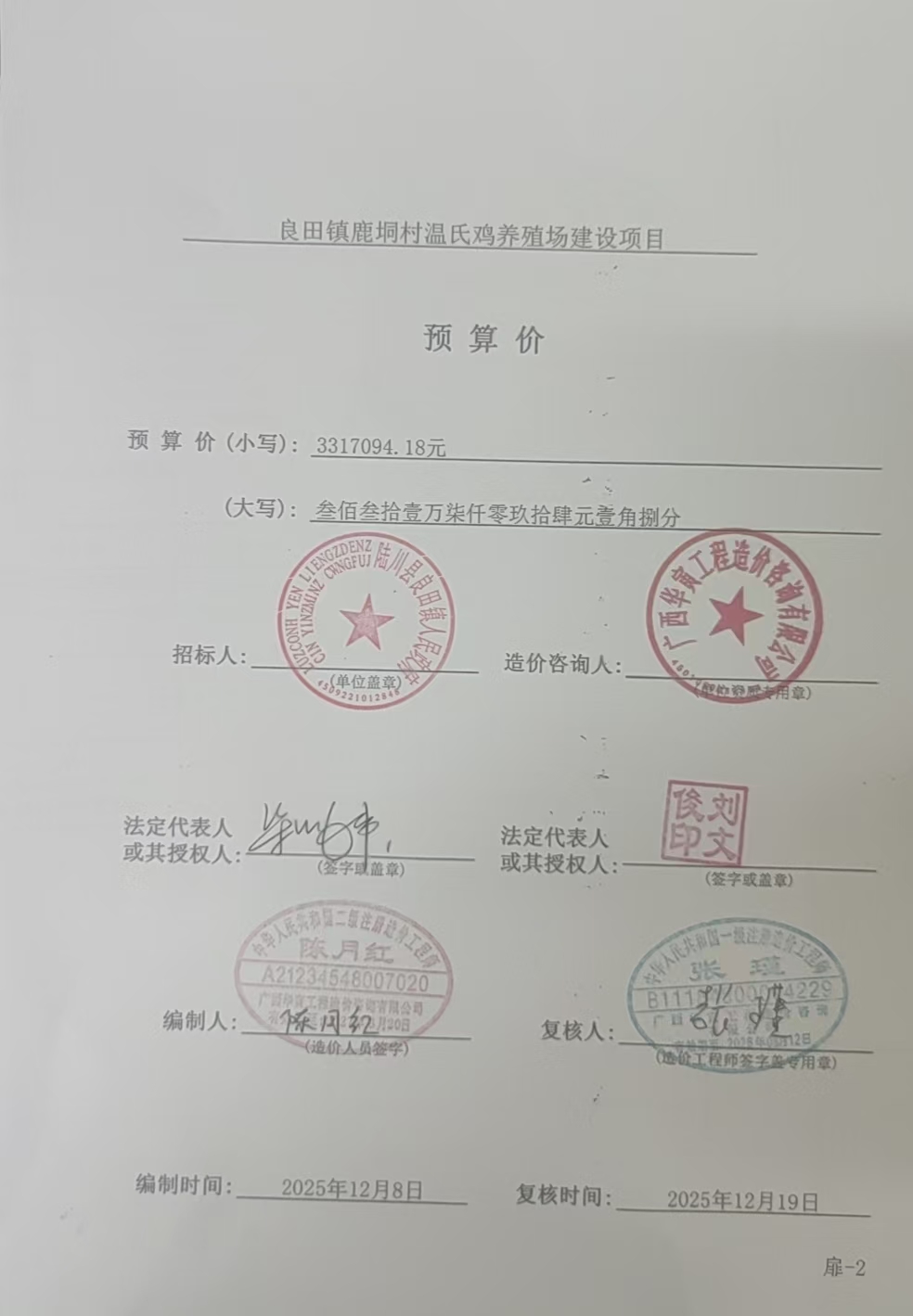 标项名称:良田镇鹿垌村温氏鸡养殖场建设项目