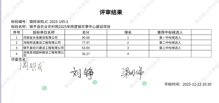 镇平县农业农村局2025年杨营镇农事中心建设项目-成交公告