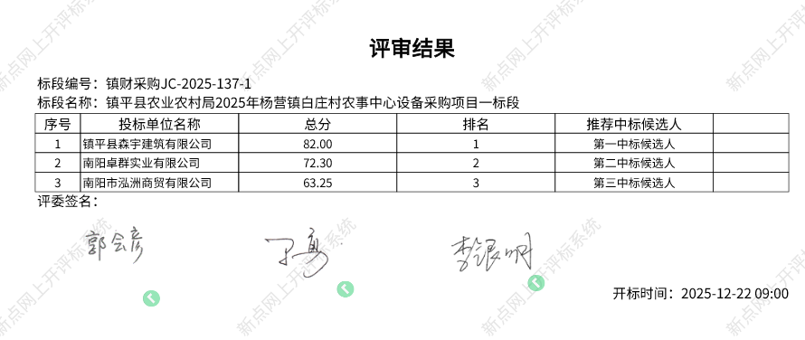 | 本次中标公告在《河南省政府采购网》、《中国招标投标公共服务平台》、《全国公共资源交易平台(河南省·南阳镇平分平台)》上发布,成交公告期限为*个工作日 。 | |||||||||||||||||||||||||||||||