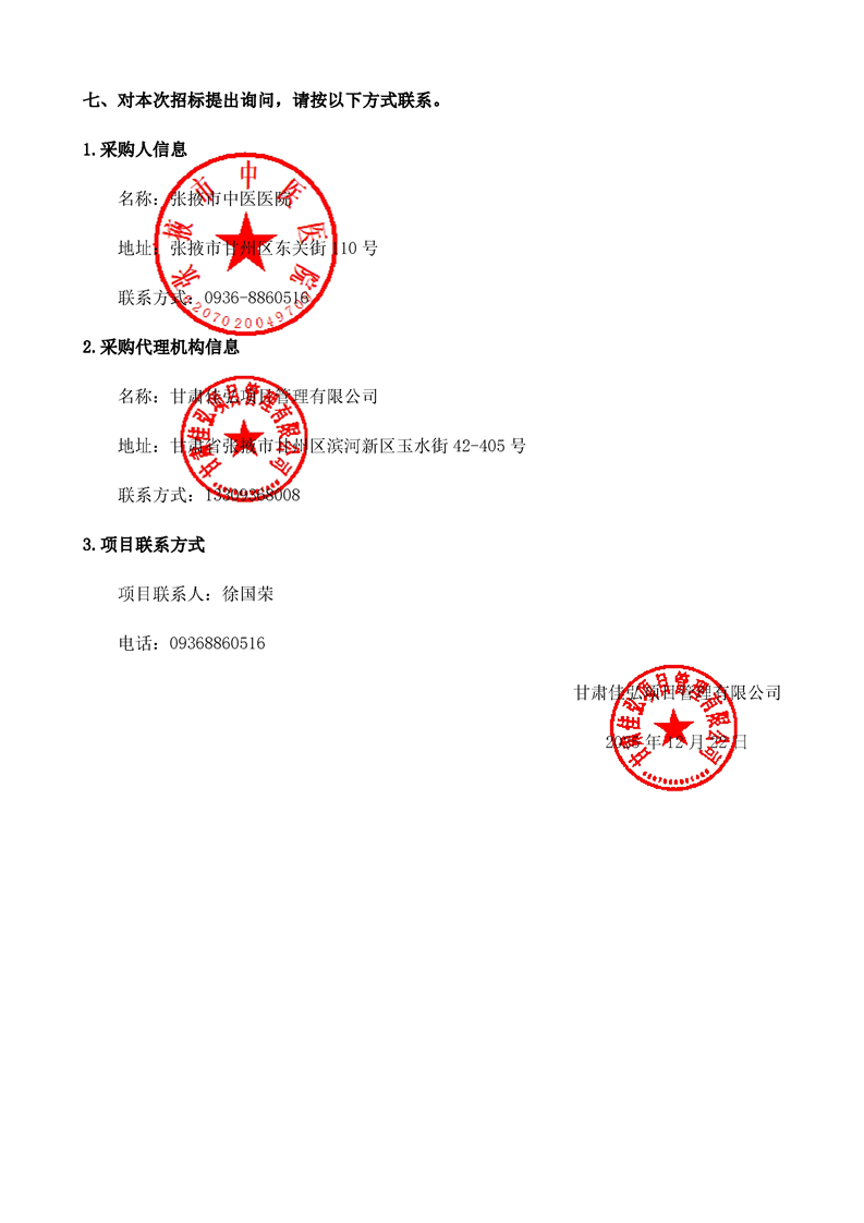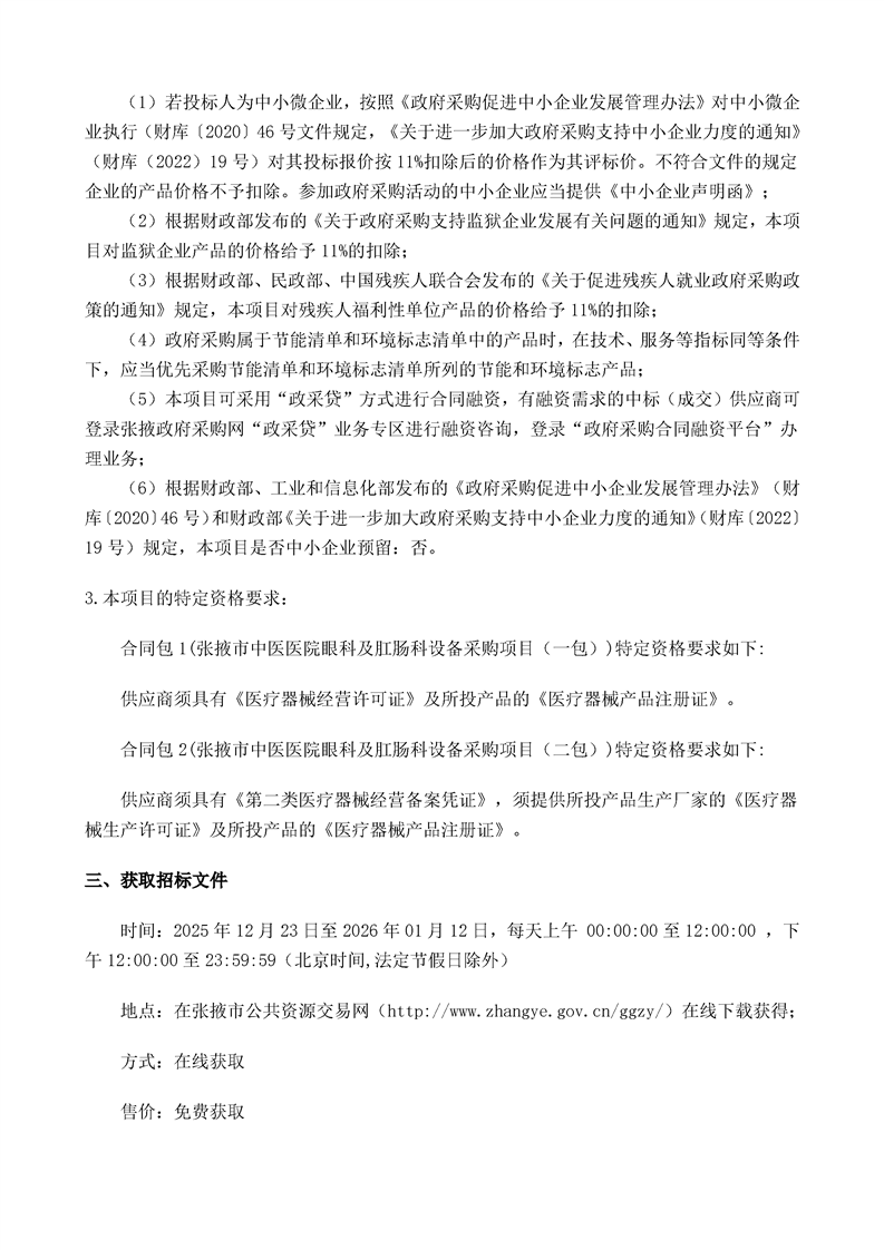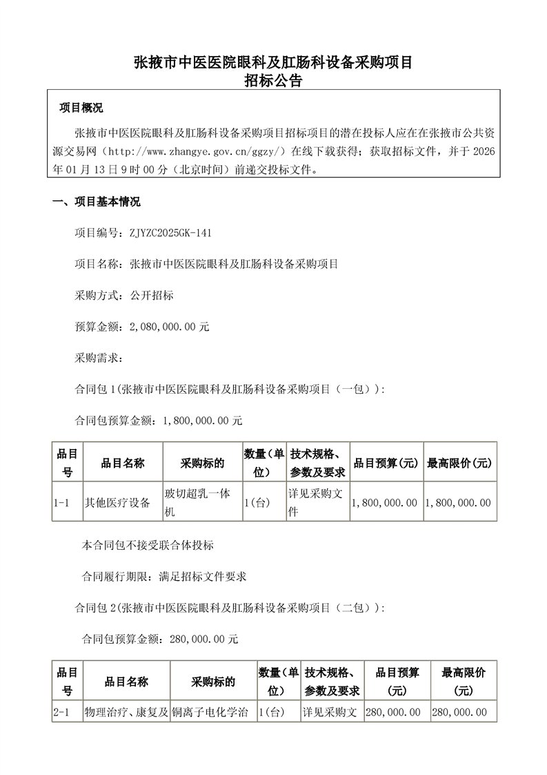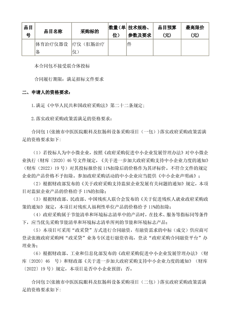 张掖市中医医院眼科及肛肠科设备采购项目招标公告