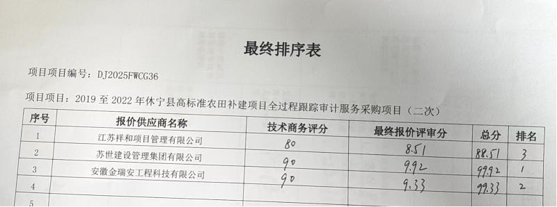 二、项目名称:****至****年休宁县高标准农田补建项目全过程跟踪审计服务采购项目(二次)