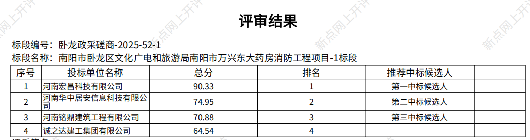 南阳市卧龙区文化广电和旅游局南阳市万兴东大药房消防工程项目-成交公告