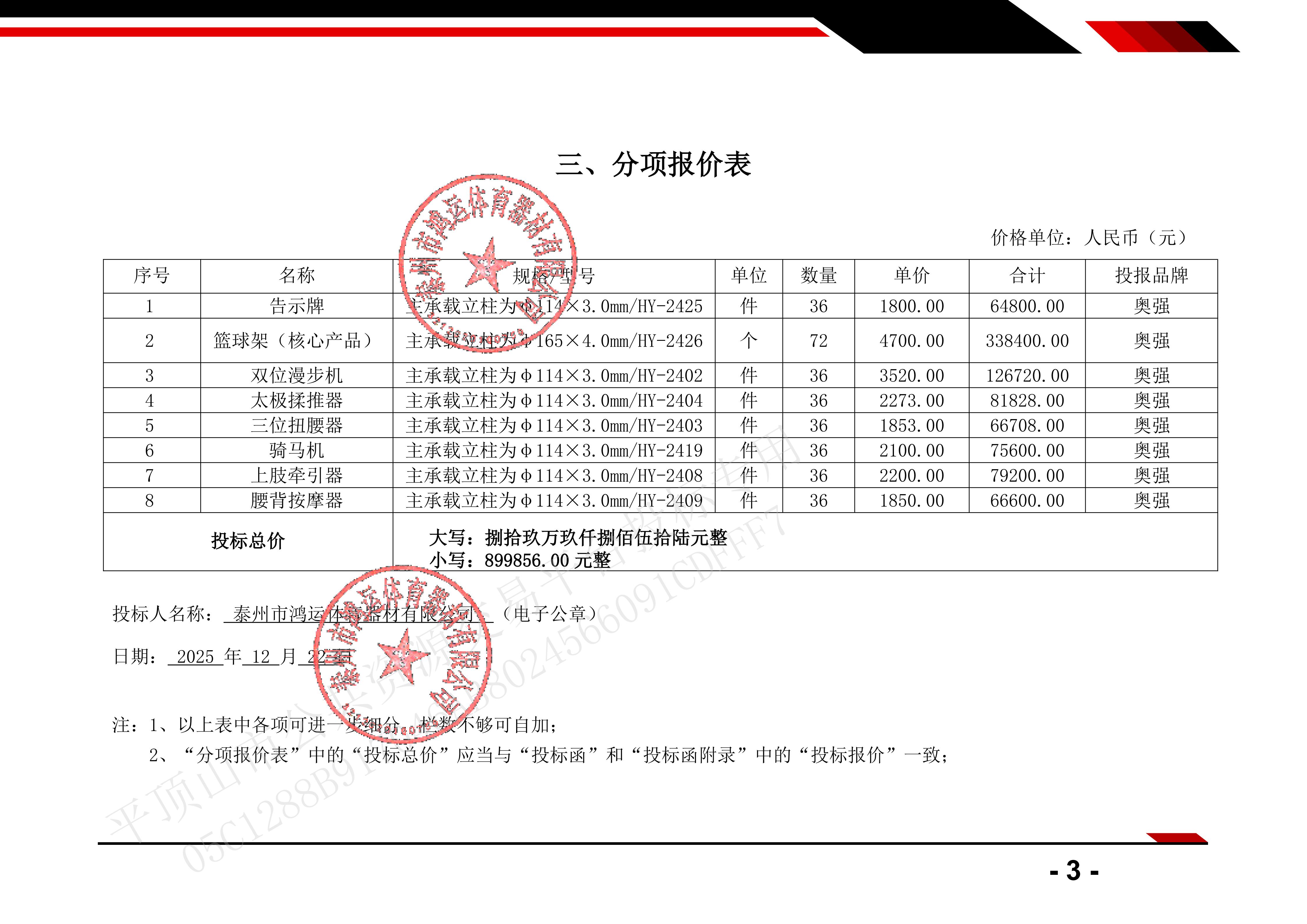 [平顶山市]【平公资采20251166号】平顶山市教育体育资源保障中心2025年平顶山市“新型农民体育健身工程”室外健身器材采购项目(第一标段)中标公告