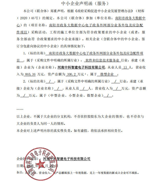 南阳市政务大数据中心电子政务外网部分业务外包及应急配件项目*成交公告