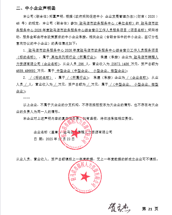 驻马店市政务服务中心2026年度驻马店市政务服务中心综合窗口工作人员服务项目中标公告