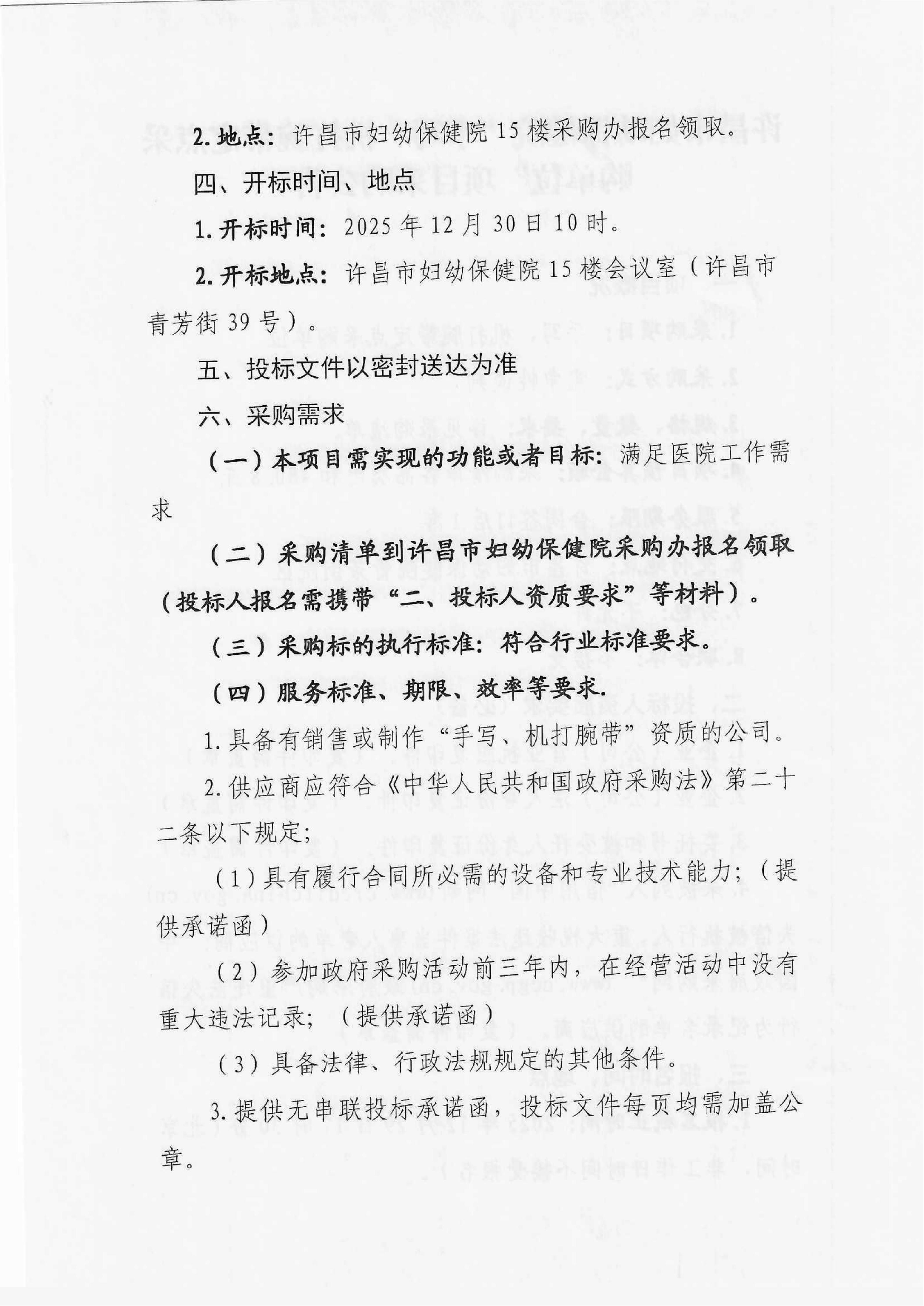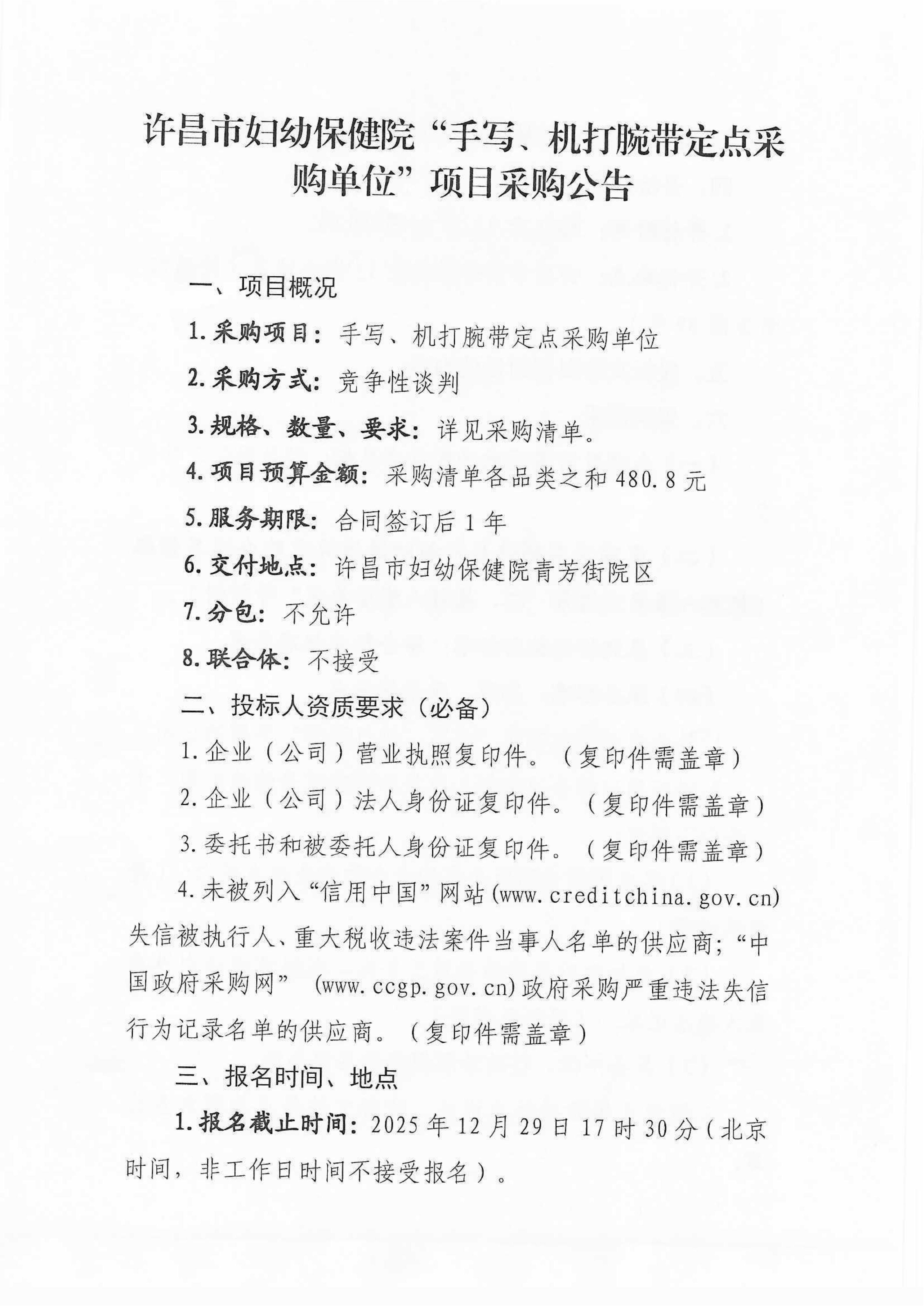 许昌市妇幼保健院“手写、机打腕带定点采购单位”项目采购公告