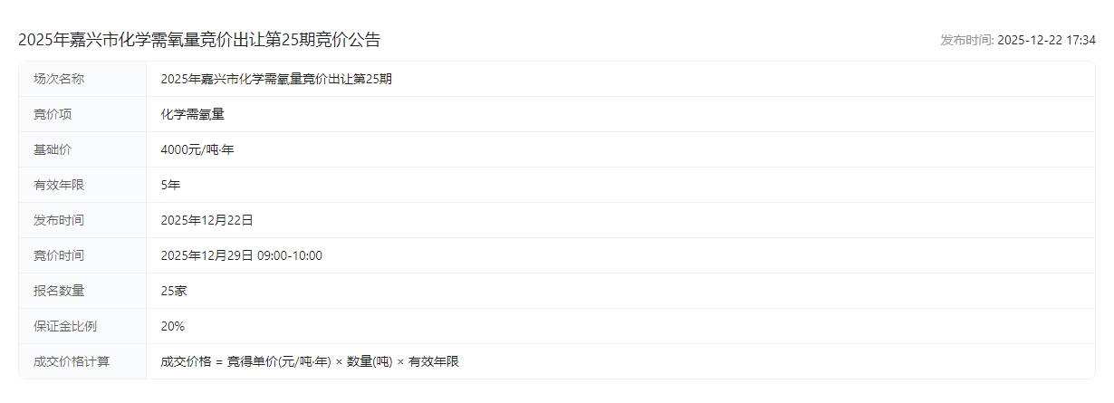 2025年嘉兴市化学需氧量竞价出让第25期竞价公告