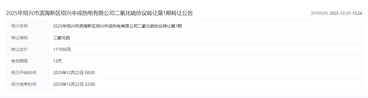 有限公司二氧化硫协议转让第1期转让公告