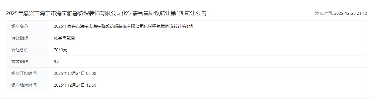 装饰有限公司化学需氧量协议转让第1期转让公告交易公告